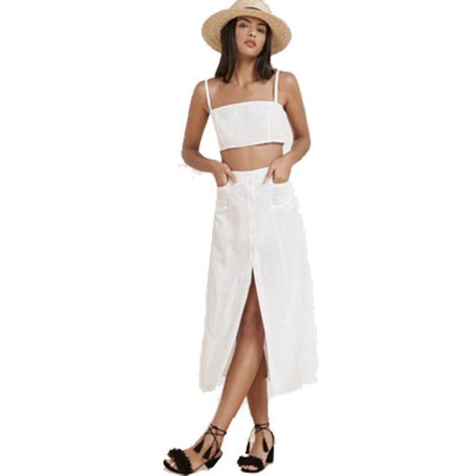 This is my first day of warm weather, sitting on a patio and drinking some rosé outfit. I LOVE this Reformation skirt and tank combo. Pair it with a cute straw hat, and I'm ready for the sun. The leather jacket is to throw over your shoulders when things get a little chilly. I'm a huge fan of this jacket, too: it's heavy, soft and you know it's only going to get better with age.