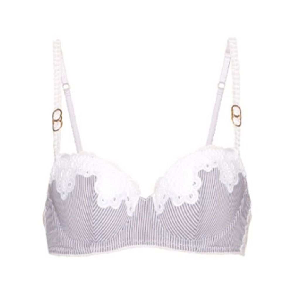 “There's a perception that if you're a small cup you can wear anything, and that's not untrue. Barely there bralets, lacy styles, quarter-cup demis—they all look fantastic on smaller cups. The Timpa Duet Lace Underwire is a cult favorite at Journelle. It's low-cut so you can show off your décolletage and supportive enough to give a good bit of lift, sans padding. Hard to argue with the rainbow of colors offered too. If you're a fan of padding, Timpa does a similar style in a padded, half-cup silhouette.”