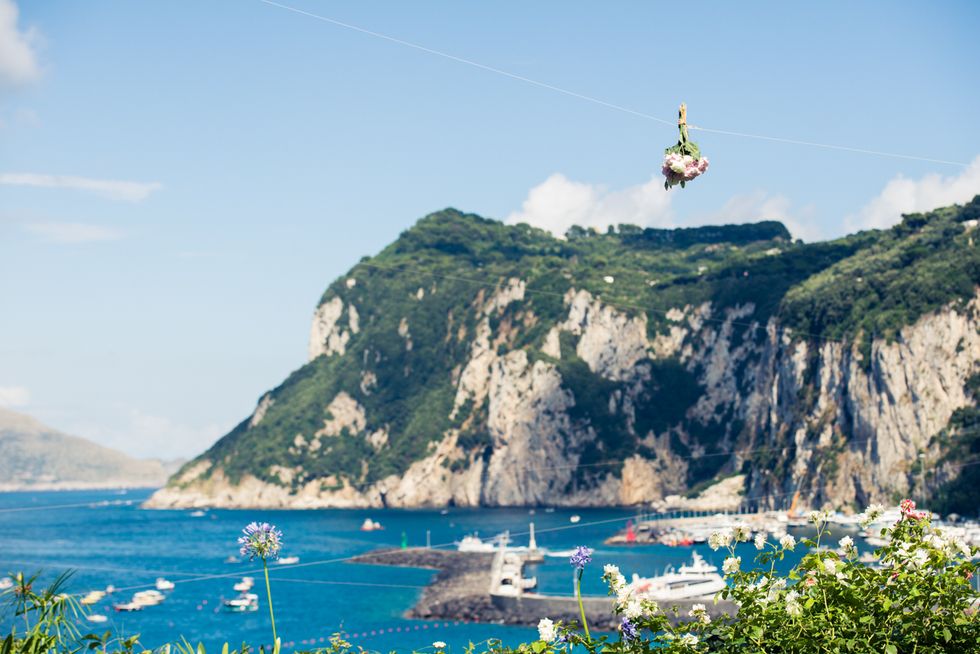 After dashing through the cobblestone streets, with Erica atop of a pint-sized construction truck, we arrived at the ceremony at the Certosa di San Giacomo (the grounds of which the couple had had planted with gardens lush with daisies). With a piano rendition of a favorite Rolling Stones song playing as Erica walked down the aisle, the couple said their vows under a canopy of sweeping trees as the guests watched from lengthy benches, letting go a fleet of white balloons that had been tied to their chairs as they took their walk back up the aisle as a married couple. We mean, if that doesn't have you going through dog-earing back issues of Martha Stewart Weddings what will, right? In a repeat of the previous night, we stayed up dancing and drinking and showing off the piano skills we never knew we had ‘til dawn. But you know what they say... some things that happen in Capri, stay in Capri—along with any photographic evidence.