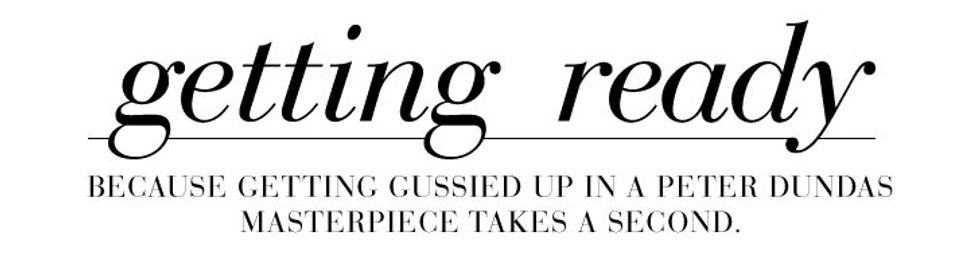 Sliding into our new espadrilles the next morning (the entire group of guests were gifted pairs of striped Louis Leeman slip-ons with the wedding date embossed into the sole upon arrival), while we felt the need for copious espresso and a facefull of carbs to even come close to functioning the following morning, the bride-to-be's state couldn't have been more to the contrary. Pelosini greeted us looking rightfully radiant in custom Katrantzou alongside her handful of bridesmaids for a poolside brunch with the designer herself (a close friend, of course). After getting our recommended daily intake of girl talk (again, surprisingly devoid of pre-wedding jitters), it was time to get down to business—by which we mean get ready—and finally get a peek at the Peter Dundas masterpiece we'd heard so much about.