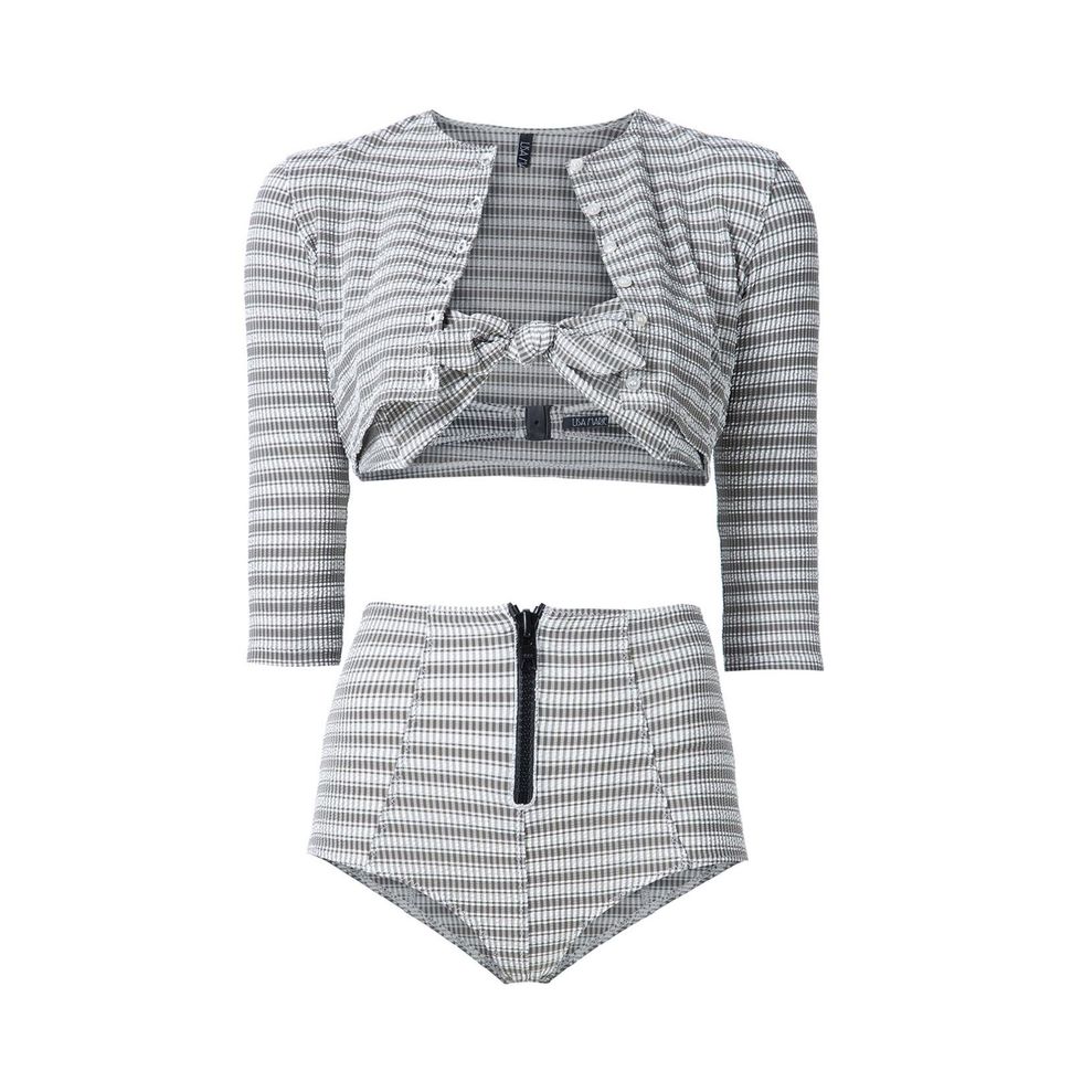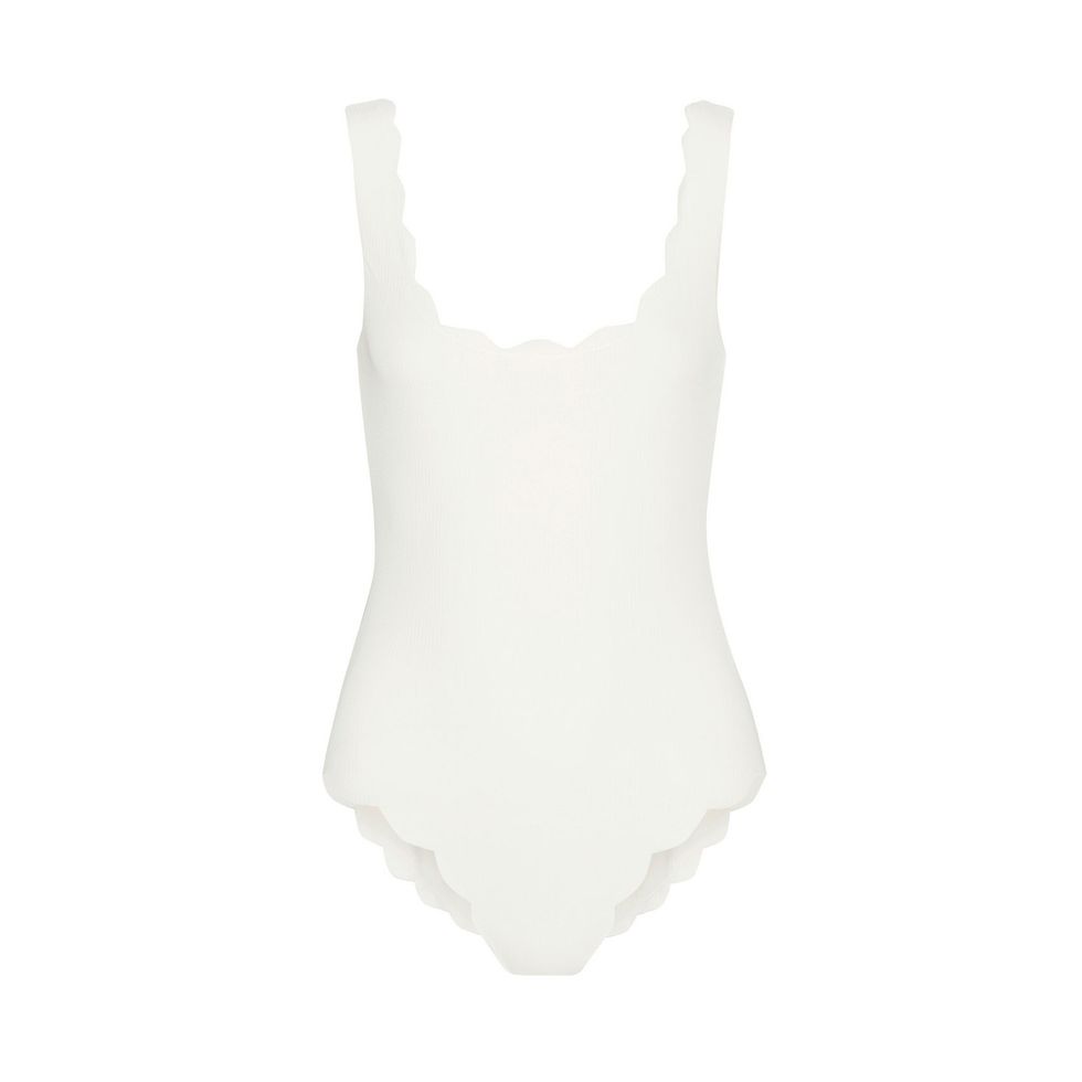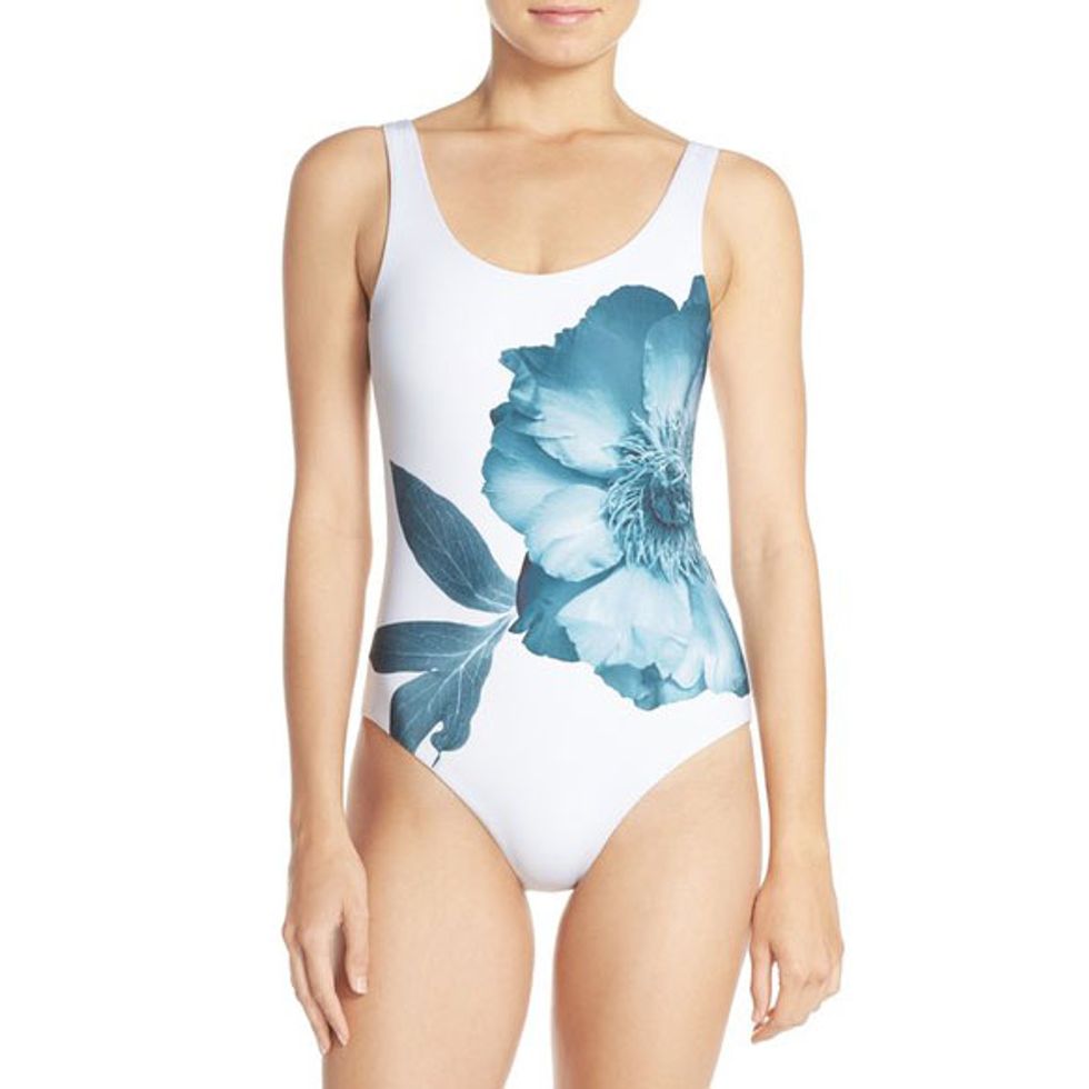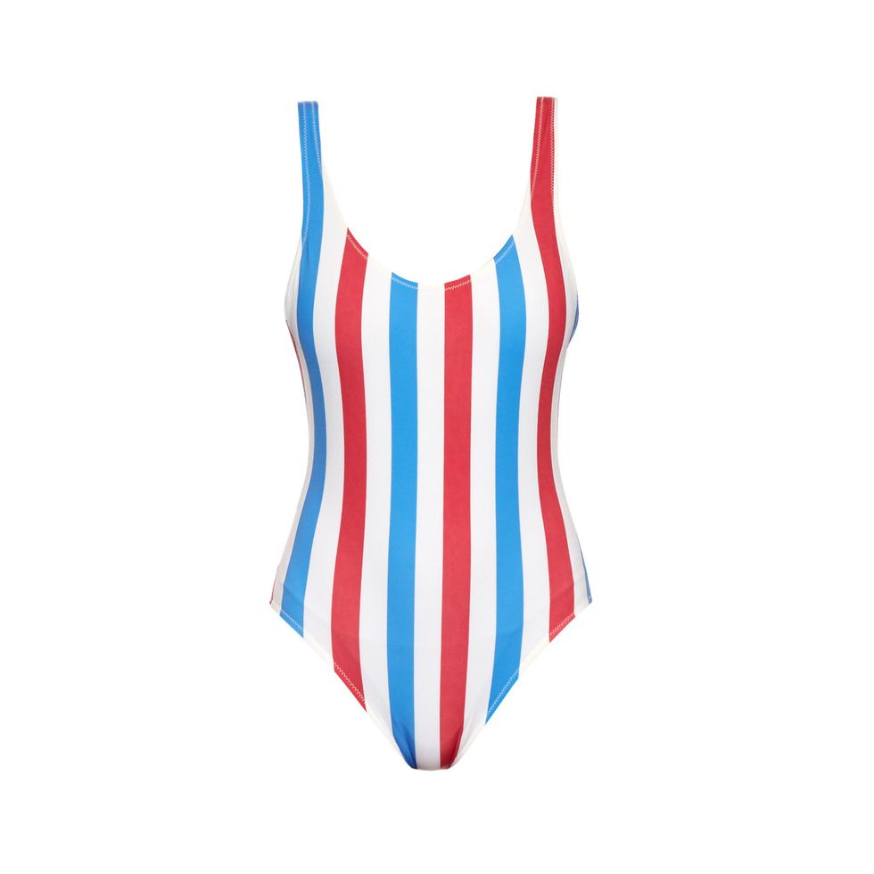 “Maillots are making a big comeback, and they're definitely not your grandmother's one-piece. This one from Marysia adds a tasteful cut-out for a sexy look that isn't overly so. In a universally flattering shade of red and with the on-trend scallop details, this one is a winner. You can never go wrong with a classic black string bikini. This one from Same Swim (exclusive to Bergdorf Goodman in NY) is updated with white embroidery to keep it looking fresh. For those who want to wear a bikini but with a little more coverage, the higher neckline top is a perfect fit. This one from Mikoh in a blue and white nautical stripe is in keeping with the preppy, sporty vibe.”