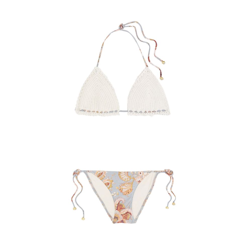 “I am a big fan of the off-the-shoulder trend this season and am all about taking your swimsuit from day to night by embracing it as a bodysuit or cropped top. Marysia’s Palm Springs scalloped swimsuit has a classic feel that is flattering for the beach and poolside, but can also be worn with a flowing maxi skirt or palazzo pants in the evening. Lisa Marie Fernandez’s Leandra bikini, a favorite of its namesake, Leandra Medine, is the perfect way to wear the off-the-shoulder trend at the beach this summer. Zimmermann is also one of my top brands for the warmer months. The brand’s floral prints and delicate fabrics are sure to stand out and serve as multitasking pieces; the Pavilion crocheted cotton and floral-print bikini is one of my favorites from the collection. The contrasting print and crocheted texture is a brand signature.”