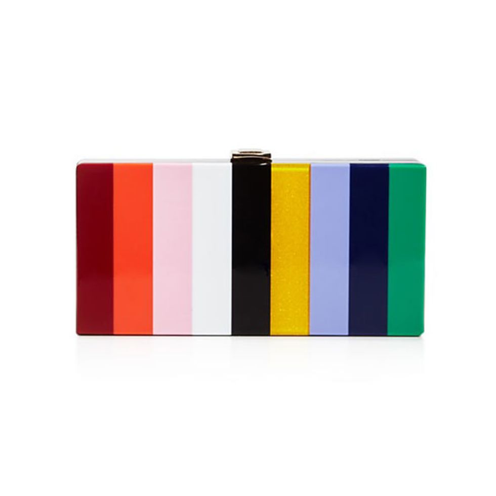 If you’ve got a big party after work, you’re likely not going to want to schlep a giant garment bag around or change into something heavy and beaded. We love this ruffled mini-dress because it’s light and cool, and it won’t weigh you down on your commute. Unfortunately, a tote bag at a fancy soiree is a non-starter, so you’re just going to have to stash your clothes under your desk at night, and carry this rainbow clutch instead.