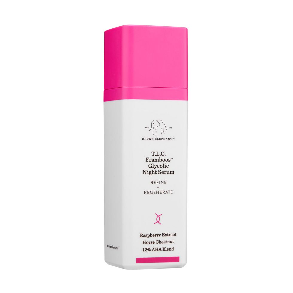 My main skin woe is puffiness—especially under my eyes. As someone who loves a good dirty (read: salty) Tito’s martini, and also spicy food (read: a shit-ton of Cholula and Sriracha on everything) I get the puff bad. When it’s especially brutal, I use my Clarisonic in the shower to kind of massage the fluid out of my face and away from my eyes. It’s definitely not meant for de-puffing, but it works. Then, I’ll slather on my favorite Belif moisturizer, and use it as a conductor for my NuFace, which I also use to massage the garbage out of my face. Other than puffiness, my main skin concern is dullness. I like to use Drunk Elephant’s Glycolic Night Serum as a light exfoliant (I love this stuff), or else Sunday Riley’s Good Genes (I also love this stuff) to brighten everything up a bit.