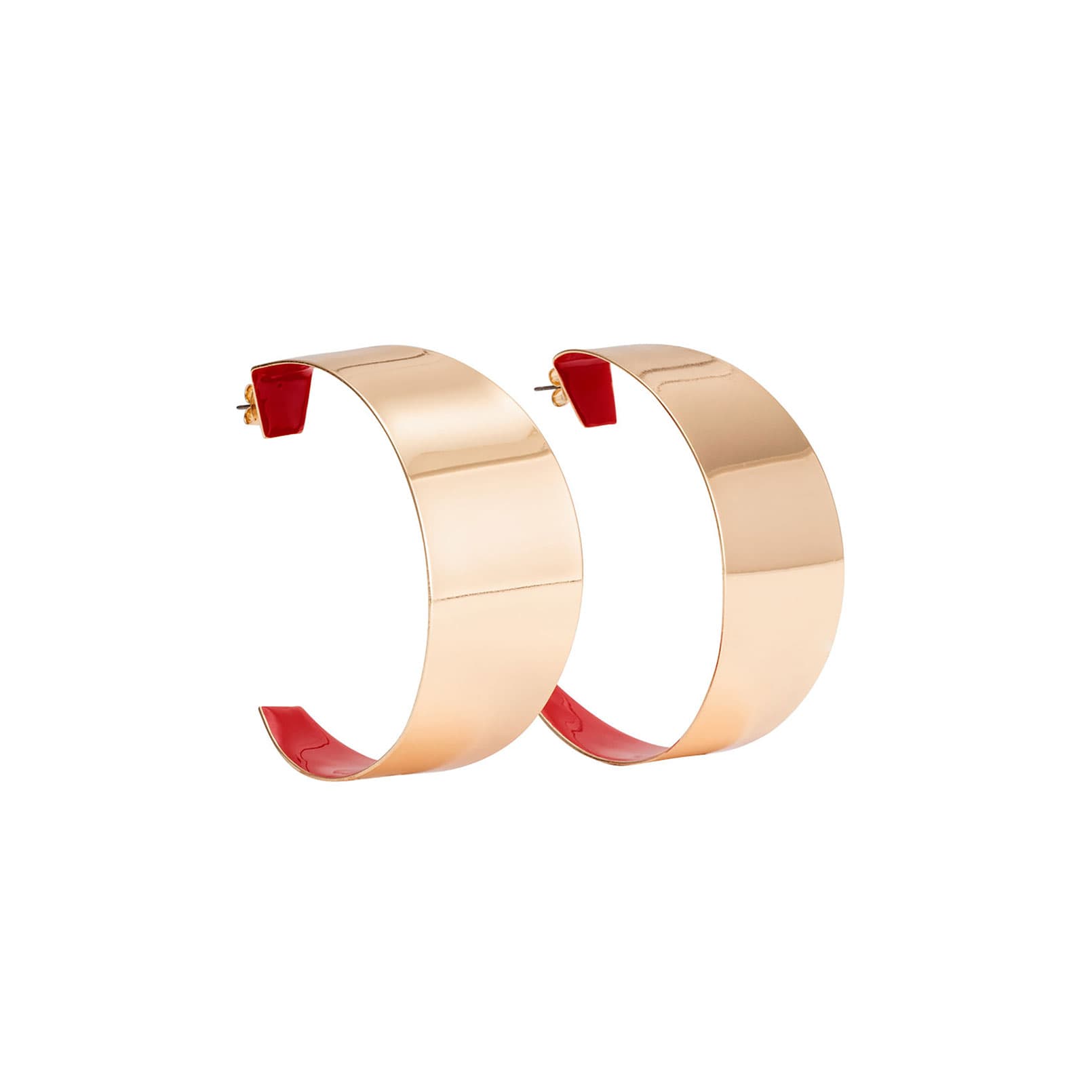 3. Earrings: Large gold hoops that are shiny red inside? Yes.