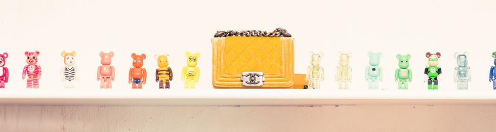 “I’m always on the hunt for quirky pieces, and I think they make up most of my wardrobe. I’ve found so many amazing pairs of shoes on Vestiaire. I’ve got tons of Céline ones—I just bought a pair of big white platforms, and I’ve also bought some amazing Céline clutches. I’m pretty obsessed with the colored leathers that Céline uses and mixes together—I have a great Céline tote that I just bought recently on Vestiaire. It’s two different shades of blue and has this terracotta-color handle, which is beautiful.”