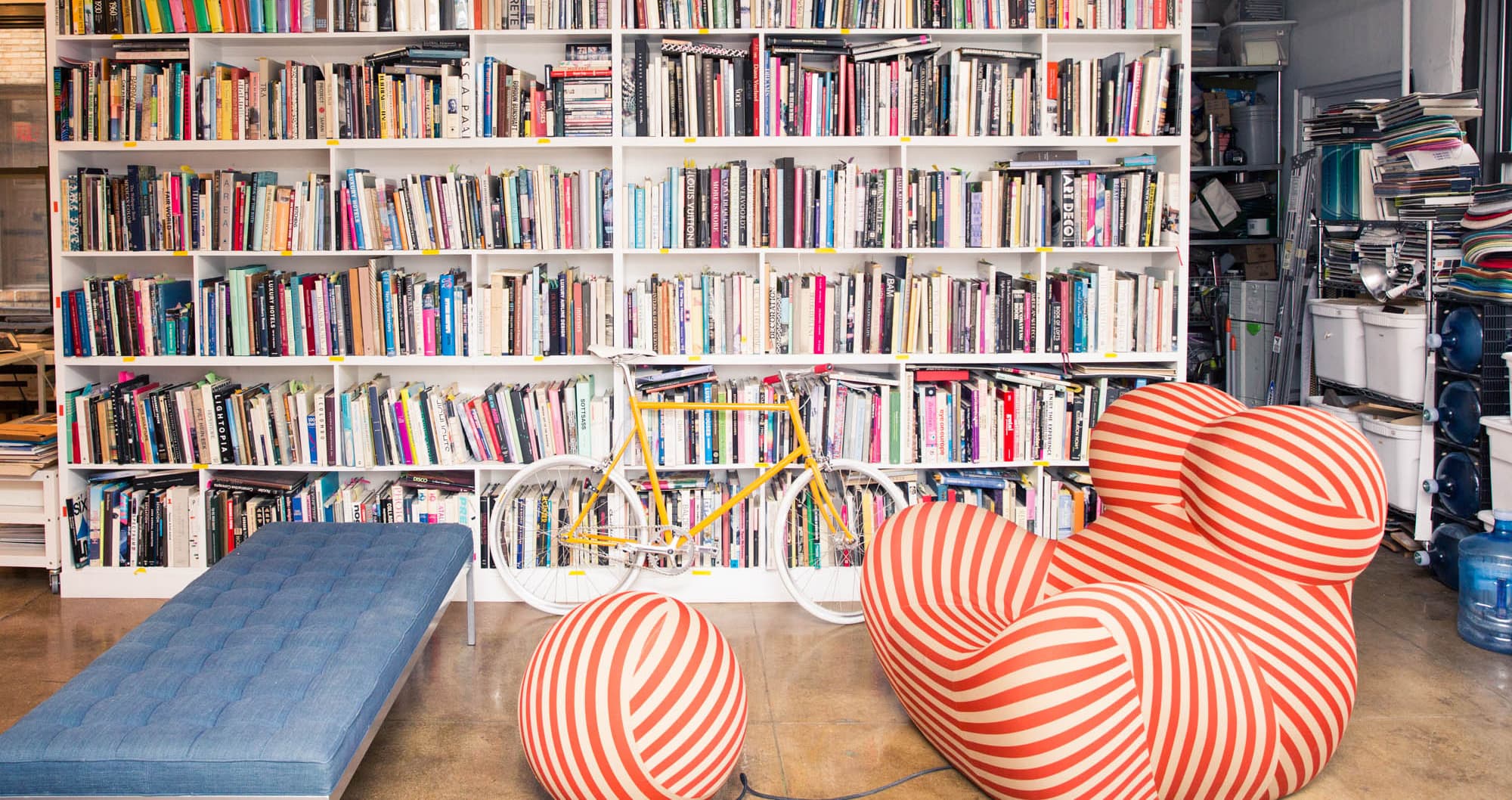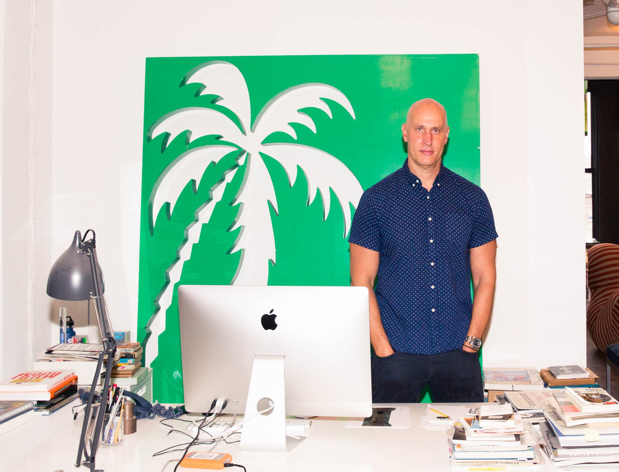 We met with Beckman (who is the kind of expressive and totally captivating guy you could sit and talk to for hours) to photograph him with a pair of massive prop scissors, explore his Chelsea studio (packed full of cataloged art books that bare the tagged evidence of being constantly referenced), and talk about, well, him a week before New York Fashion Week started in earnest. His studio was in the midst of approving color prints for the Coach show (another Beckman special), and it was about twelve days out from Marc Jacobs’ Hammerstein Ballroom extravaganza. Beckman had yet to hear many details about the show (they were “working on it”), but to hear him tell it, this was business as usual. This is what fashion week is like for the industry’s most in demand set designer.