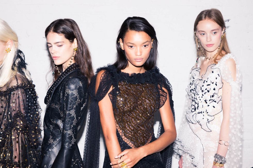 Seeing Odile Gilbert’s work backstage at Rodarte was magical, but seeing the collection walk was truly breathtaking. Think: Bee-inspired (seriously) glittery Victorian/Western bad girls of our dreams.