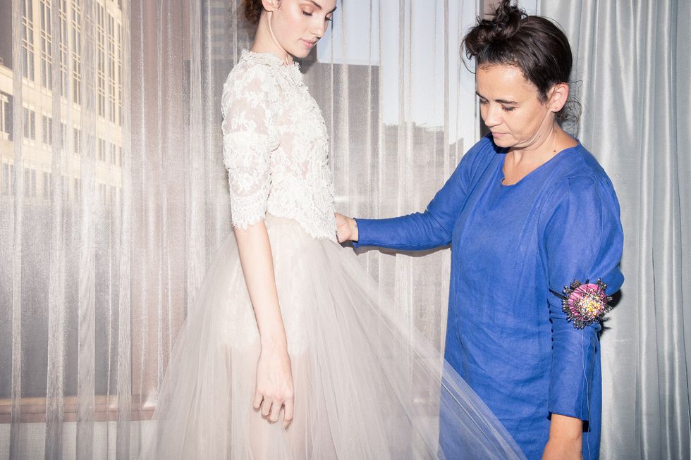 “Most of my brides work in fashion or a creative industry, are aware of the mass market, but are looking for and appreciate a gown that’s handcrafted and not mass-produced. They want a very personal and creative collaborative process with a designer.