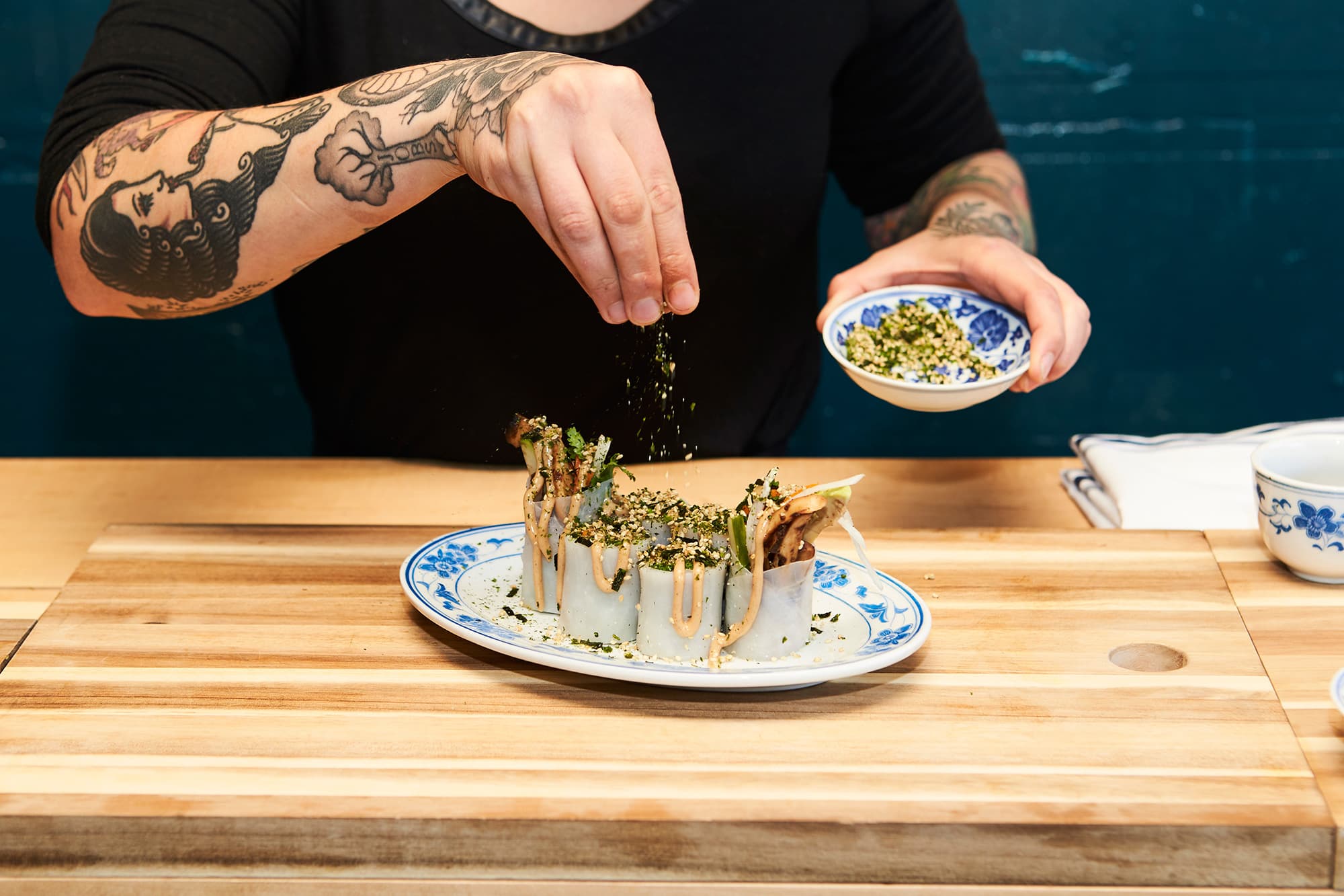 When we aren’t shooting one-of-a-kind Pablo jackets or coming out with a coffee table book (!!!), chances are we’re eating something, somewhere. Lunch discussions at Cov HQ are taken very seriously, and we pride ourselves on uncovering new spots to indulge. So, when we came across Toronto’s College Street Pray Tell Bar—the cutest little place that is practically exploding with plants (in the best way)—we knew we had to make a trip there immediately to try one of everything on the menu, this King Cold Roll included (it’s like a healthier version of a spring roll). And since it was so damn good, it would’ve been a little selfish for us not to share Chef Sonia Mondino’s creation with you.