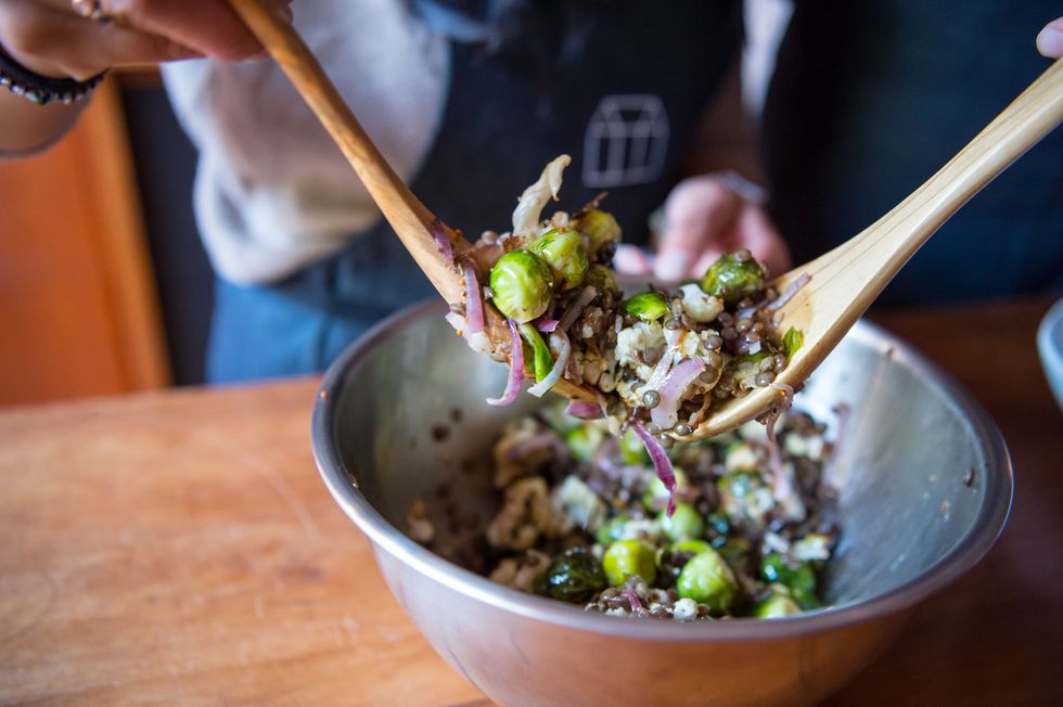 It’s the time of year where we want every meal to be warm and comforting. Salads are no exception (weird as “warm salad” might sound), and we’ve come to realize that when done properly, a warm salad is downright delicious. We got word that our ever-healthful friends at Toronto’s Greenhouse Juice Co. are coming out with a cookbook (!!!), so we figured it was only right that we turn to them for a tasty warm salad recipe that we can eat all winter. Greenhouse co-founders Hana James and Emma Knight cooked up (literally) a recipe just for us that, by the looks (and taste) of it, we’re going to be making for the rest of our lives—or at the very least, until spring thaw. Yeah, it’s that good. Prepare your pots and pans, you’re about to blow your roommates/S.O./in-laws/yourself away with this one.
