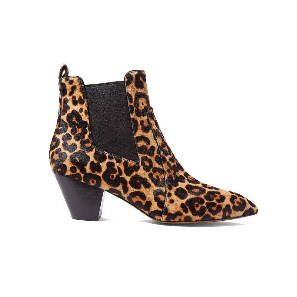 Now for boots—and not the snow-slushing, rain-safe, practical versions, but the investment type that will go with anything. And while leather Chelsea boots hold a safe spot in everyone’s sartorial repertoire, in our opinion, so do leopard-print calf hair ones. Because when has leopard not been a neutral? Add in some block-heeled high boots for weekends and you’re set.