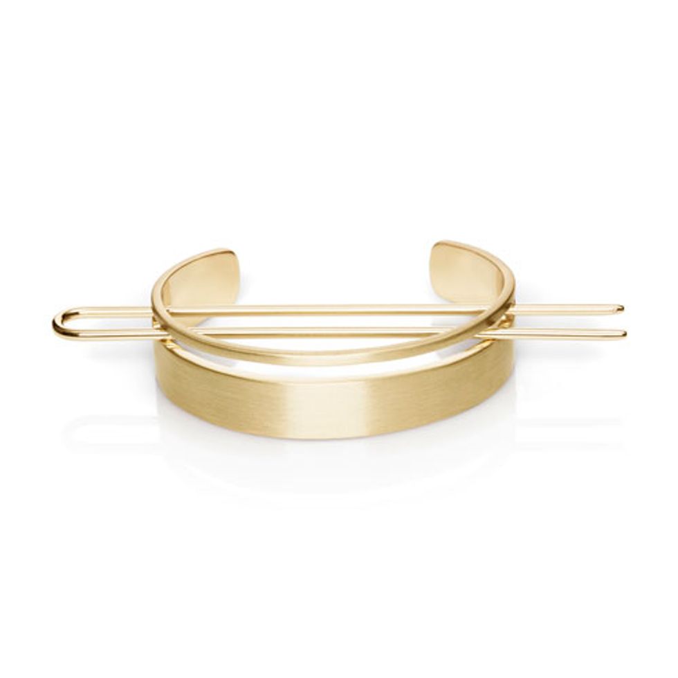 5. Finish with the same hair spray before you adorn the bun with the bun clip—simply hold the cuff in place and slide in the pin to lock it in place. Pro tip: When dealing with hair accessories, do not use spray once the accessory is already in place—hair spray causes hair accessories to lose their luster.