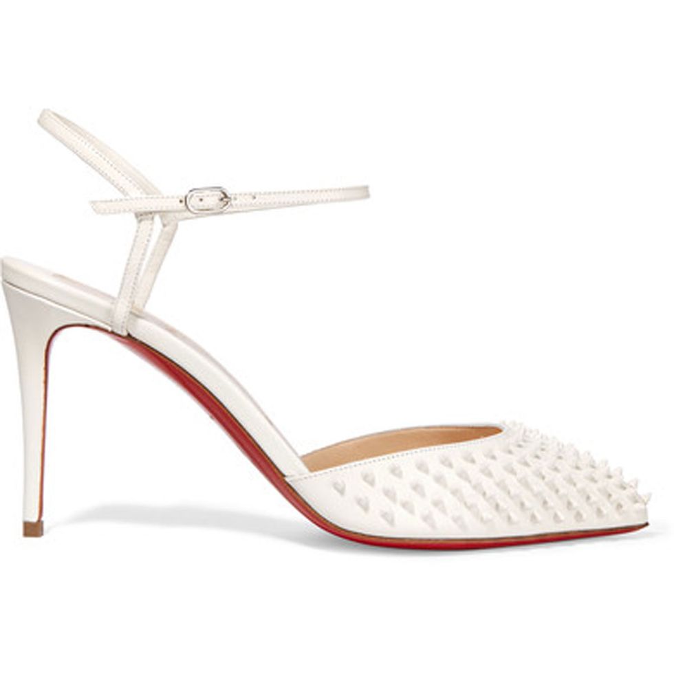 If showing your toes on your wedding day isn’t exactly your style—or the season doesn’t allow for it—consider a closed-toe pump. While there are tons of nude and white versions on the market, if you’re feeling bold, go for an element of surprise with an embellished heel or subtle spikes to offset a minimal dress.