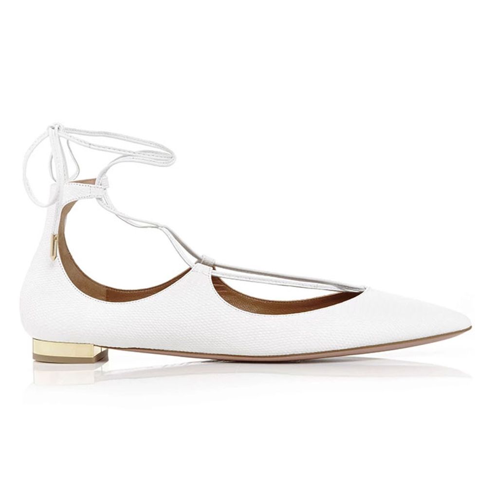 There’s a reason ankle ties have adorned pretty much every shoe for the last few season. They flatter most ankles and look amazing in photos. For your wedding day, go for crisp white flats or a soft pink pair that will pop under your gown.