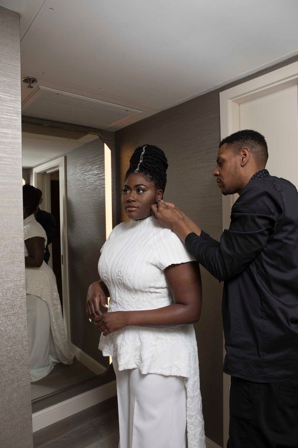 While the red carpet is the best part of any awards show, getting ready *for* said red carpet is even better. And lucky us, we got to tag along with Orange Is the New Black star Danielle Brooks as she got ready for the SAG Awards. Imagine this: a room filled with upbeat music, stylist Kareem James, and Brooks’s infectious, bubbly personality—do you see why we wanted to hang all day long? Brooks has a way of lighting up a room and making everyone feel like they’re family, and when she changed into her custom-made Christian Siriano pantsuit, we were left scrambling to pick our jaws up off the floor.
