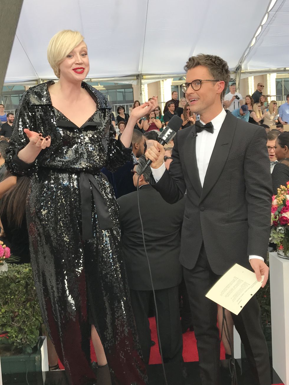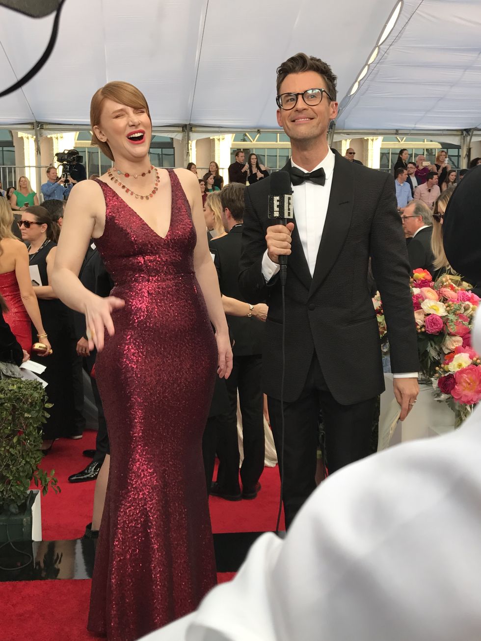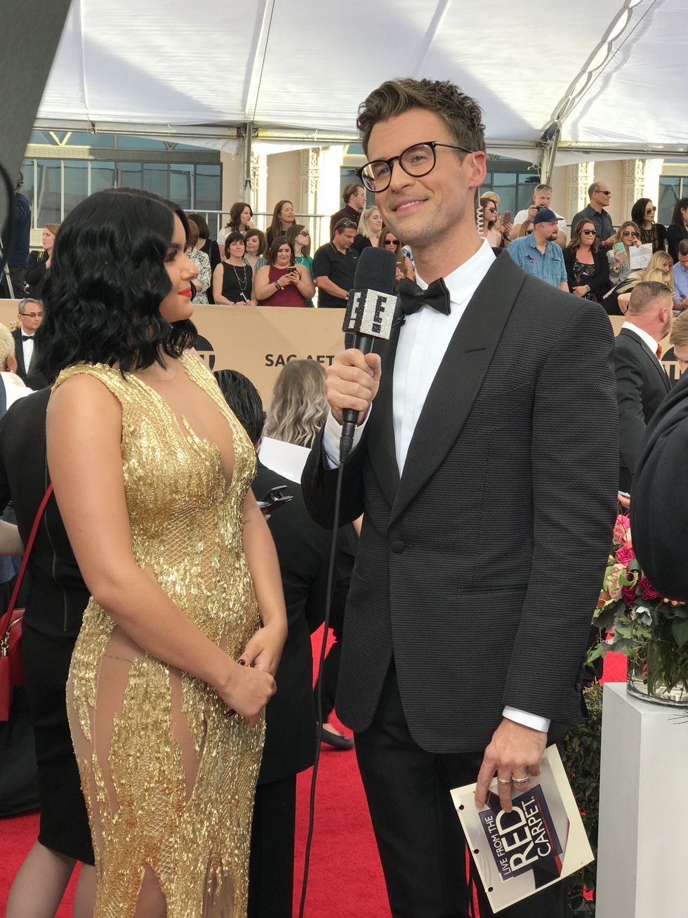 You would think Brad Goreski is busy enough around awards season, considering the fact that he includes Rashida Jones and Kaley Cuoco among his styling clients. But no, the man also hosts E! red carpet specials and will co-host Fashion Police when it returns tonight (!). He’s busy. He also has a very particular (and by that we mean, up close and ~insider~) perspective when it comes to the red carpet. Which is why we asked him to send along a couple of snapshots of his favorite moments (as well as his call on best dressed) from the SAGs red carpet. Want to see more from his day (and more of his puppies)? His video diary, live now on Coveteur’s Facebook, is about as hashtag-real-life as you get around awards season.