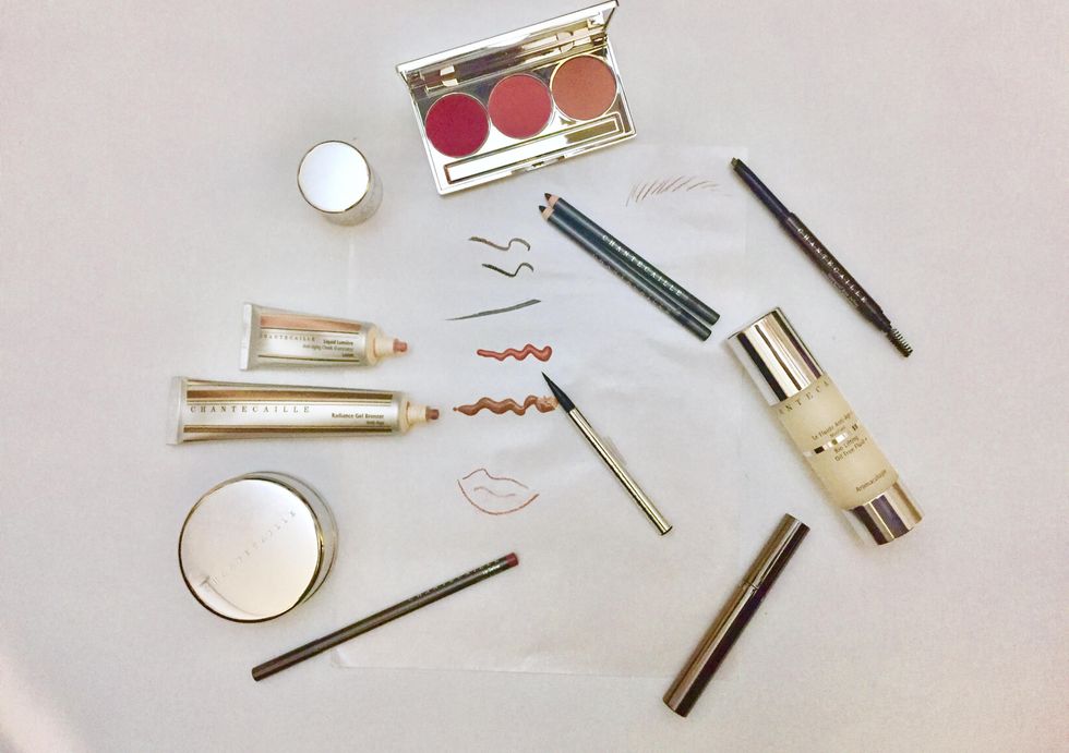 1. “I massaged Chantecaille Bio Lifting Oil Free Fluid all over the skin using Stress Repair Concentrate mixed in with Future Skin Foundation for a sheer application. Banana Future Skin was used in the center of the face and Suntan Future Skin was blended through the hollows of the cheek as well as the forehead to match her complexion—stippling the foundation where needed for extra coverage.”