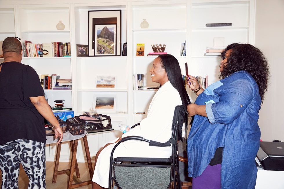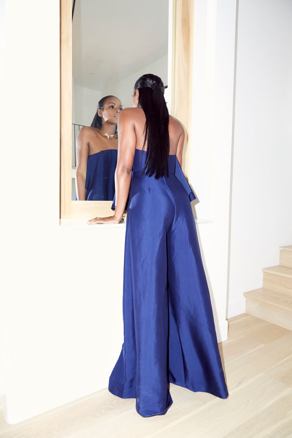 Fact: if we were headed to an awards show, nominated for Outstanding Actress in a Motion Picture, we’d (at least try to) do it the Tika Sumpter way. Thanks to our friend Ali at TBOYaficionado who intro'd us to the actress, we spent the hours leading up to the NAACP Image Awards with her, and the star didn’t show a single sign of nerves, setting out snacks for her team, listening to music, and pulling on a layered jumpsuit rather than a bedazzled gown (better for eating, she revealed). The Southside With You star even had a plan for her hair: pulled back, manageable, in case there was rain. Overall, the setup was perfect for a fuss-free night with friends—and a return to the red carpet post-baby.