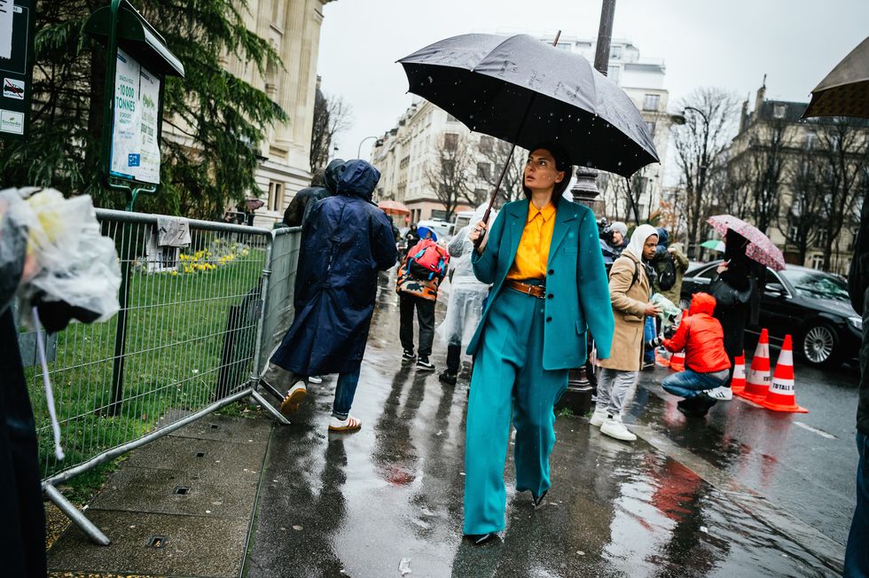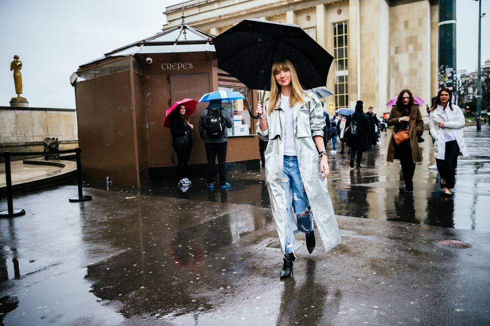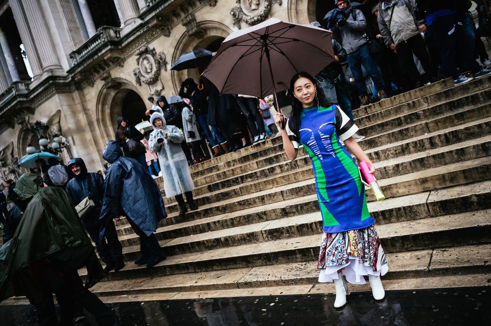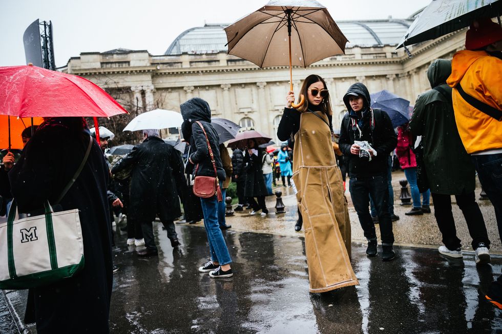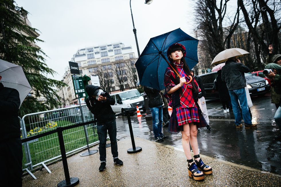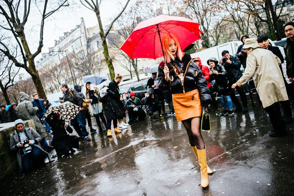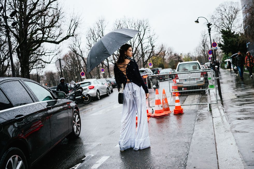 This season the Fashion Gods do not seem to be smiling on Paris. The city has seen nearly nonstop rain since the shows kicked off last week, which means showgoers have had to accessorize with umbrellas and rain-friendly footwear. But we’ve said it before and we’ll say it again: sometimes the most challenging weather situations bring the biggest opportunity for creativity. Here are our favorite street style looks, captured by Daniel Kim of @WalkingCanucks.