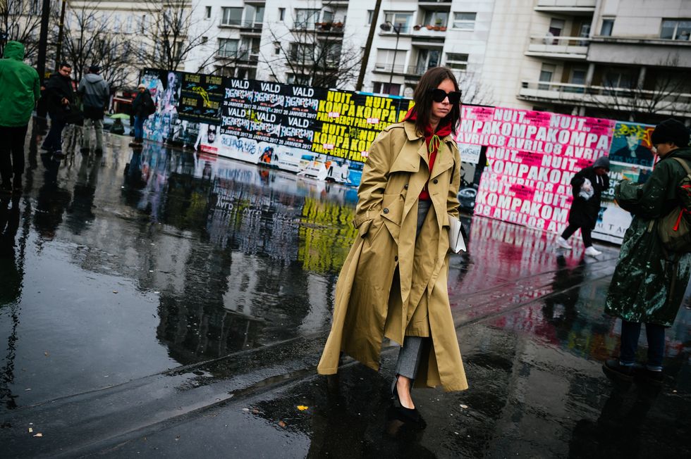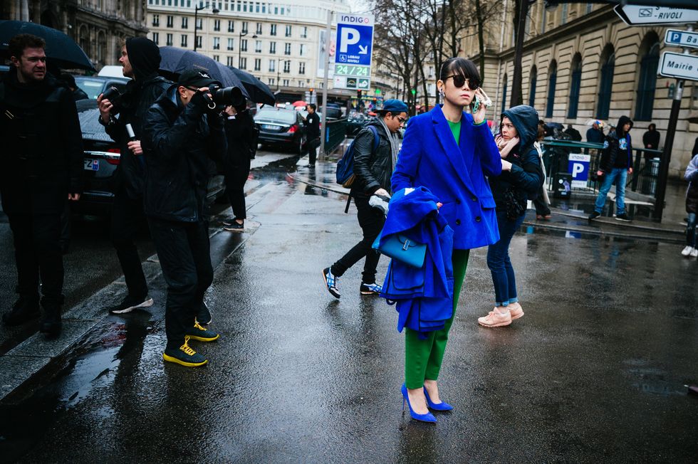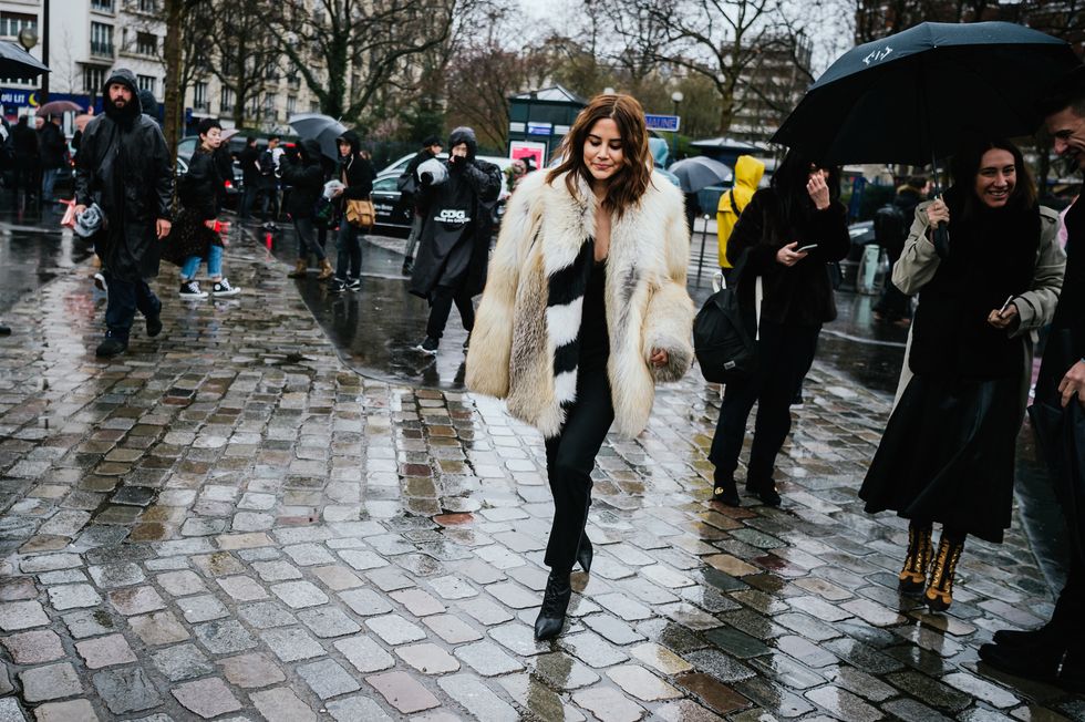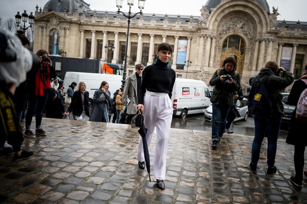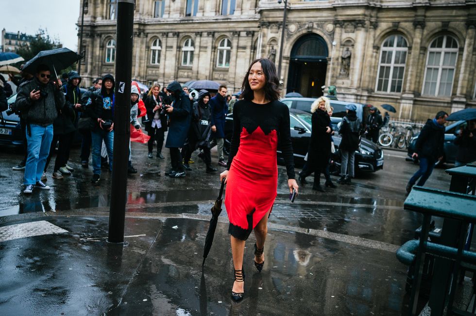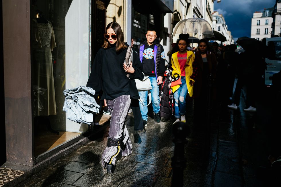 This season the Fashion Gods do not seem to be smiling on Paris. The city has seen nearly nonstop rain since the shows kicked off last week, which means showgoers have had to accessorize with umbrellas and rain-friendly footwear. But we’ve said it before and we’ll say it again: sometimes the most challenging weather situations bring the biggest opportunity for creativity. Here are our favorite street style looks, captured by Daniel Kim of @WalkingCanucks.