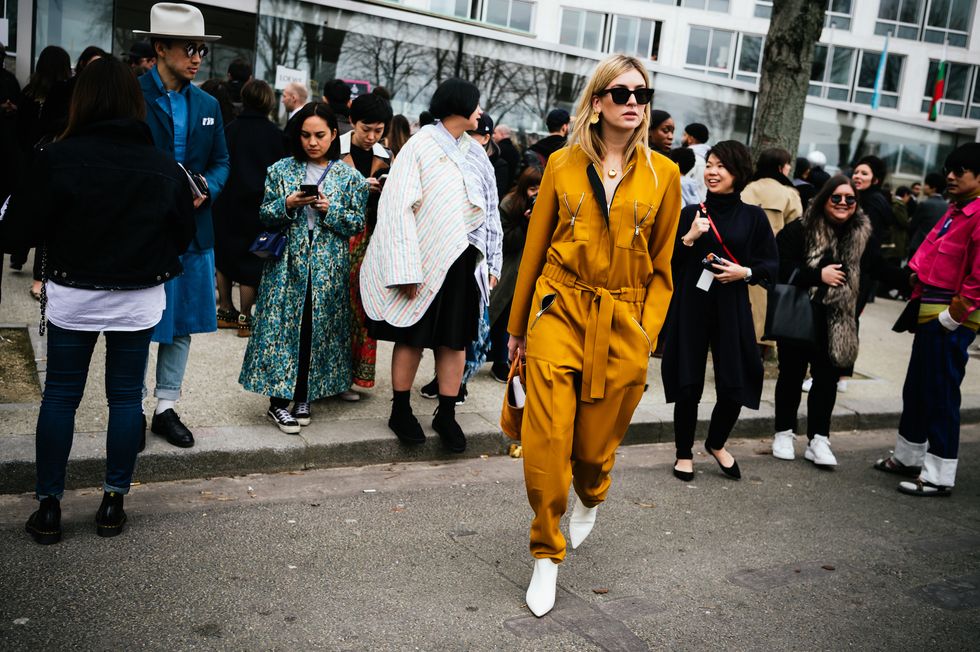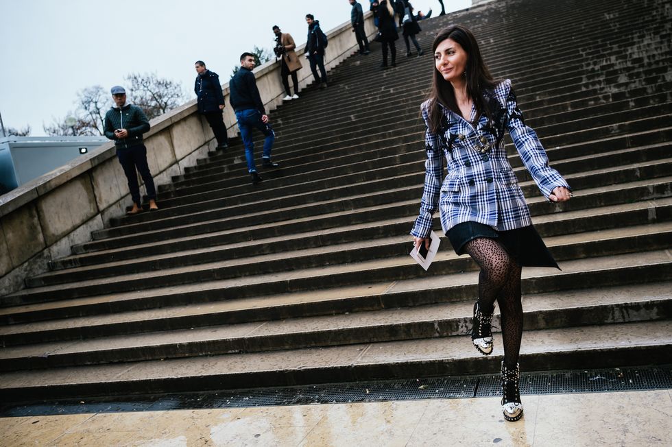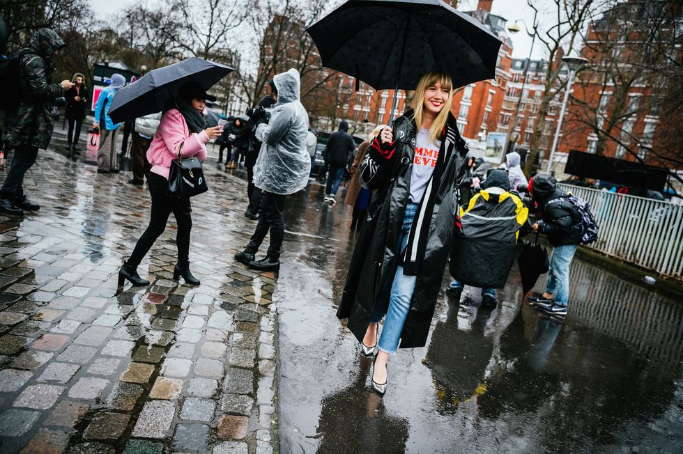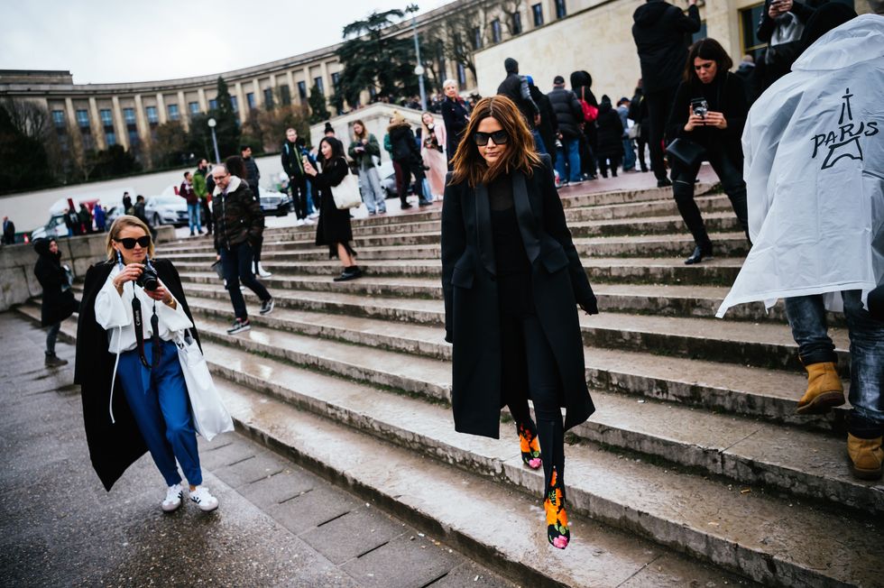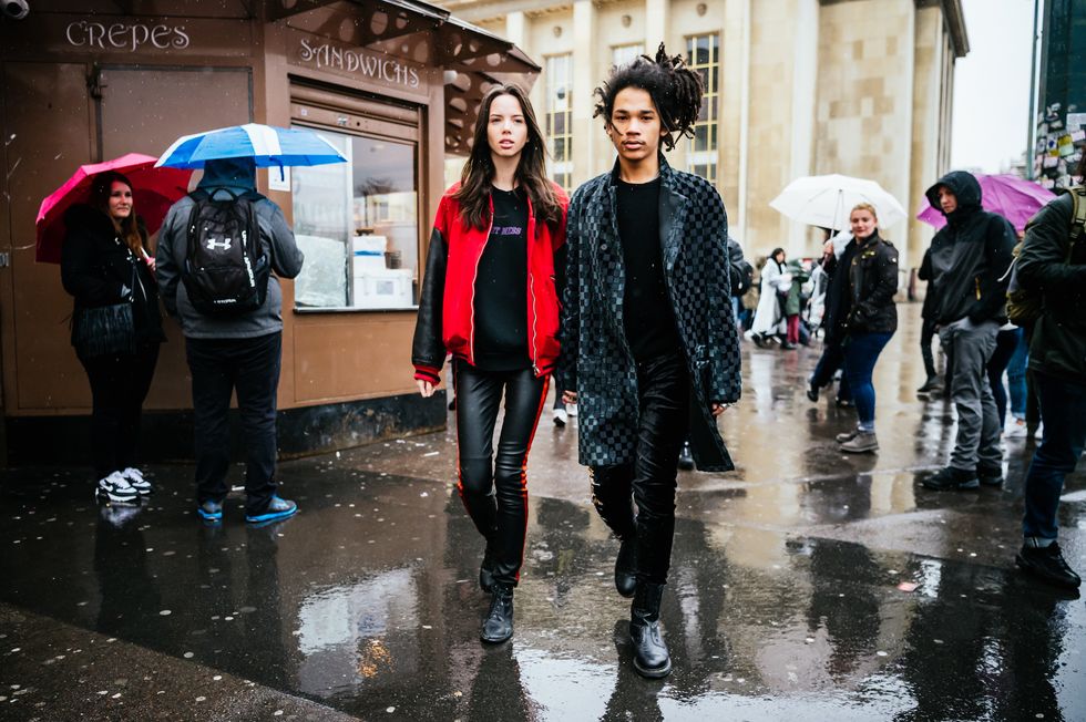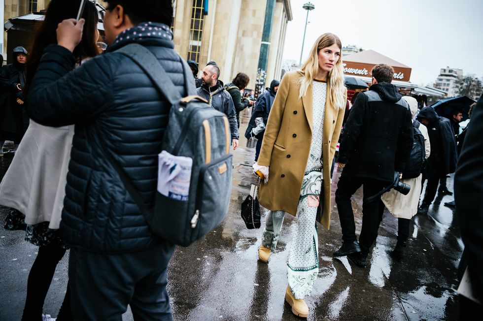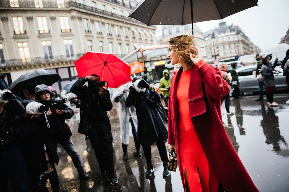 This season the Fashion Gods do not seem to be smiling on Paris. The city has seen nearly nonstop rain since the shows kicked off last week, which means showgoers have had to accessorize with umbrellas and rain-friendly footwear. But we’ve said it before and we’ll say it again: sometimes the most challenging weather situations bring the biggest opportunity for creativity. Here are our favorite street style looks, captured by Daniel Kim of @WalkingCanucks.