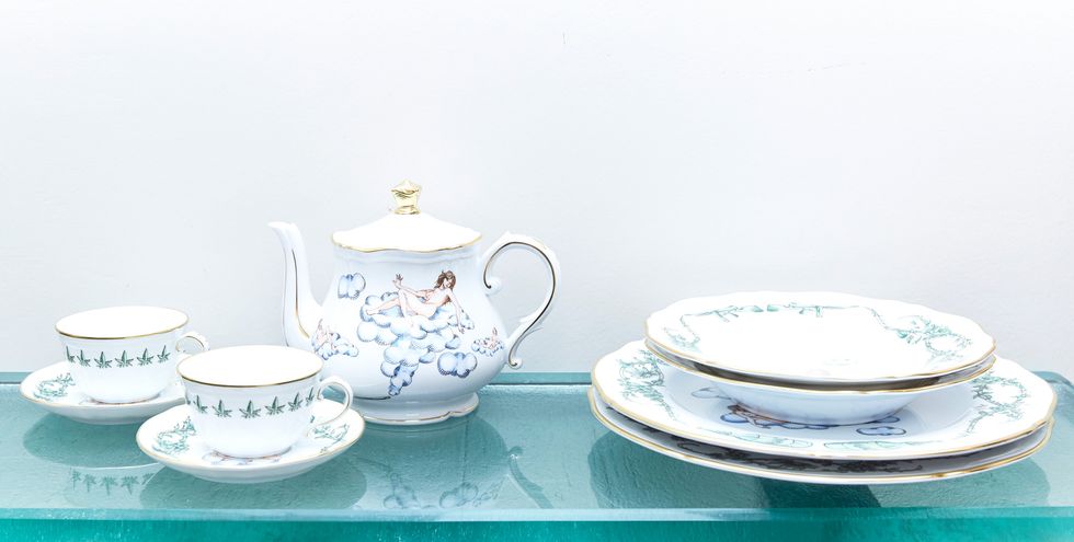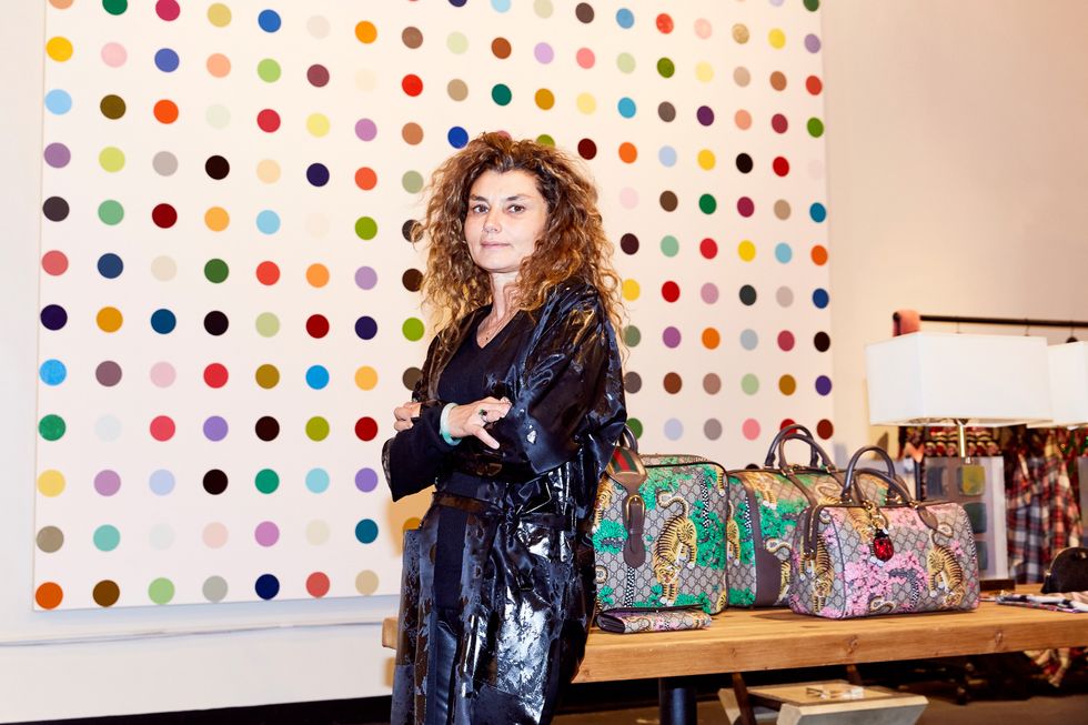 From time to time, Paola finds a way to fuse her passion for art and fashion by doing one-of-a-kind collaborations. Think a Disaster Relief Kit that has a night-vision scope (that the Navy Seals actually use) and a cashmere blanket (obviously). Or that black patent leather Nile crocodlie backpack decorated with pills and spots, worth $55,000, that was designed by The Row and Damien Hirst. NBD!