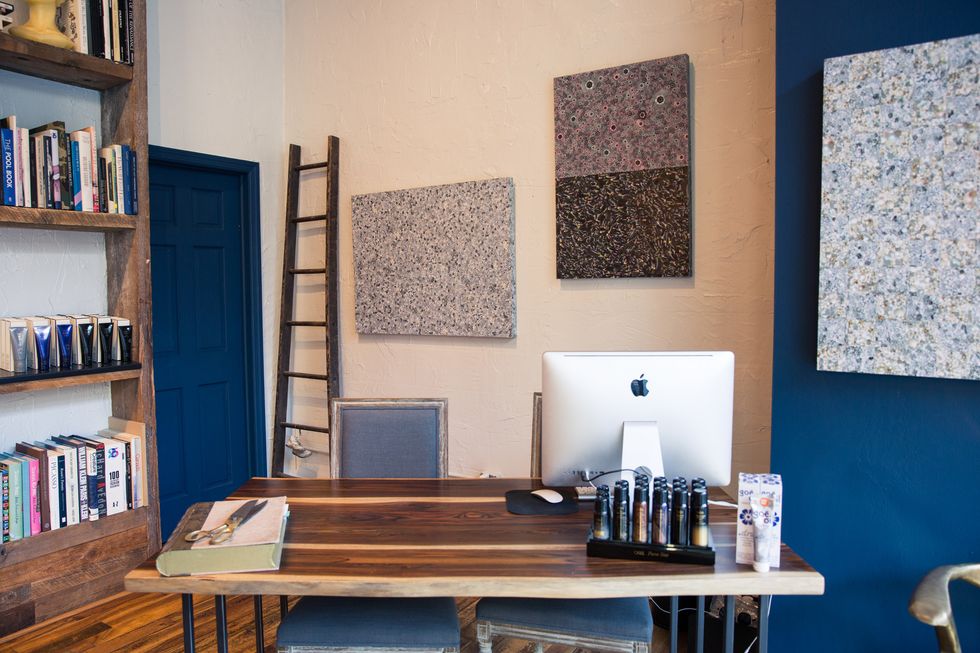 One visit, and we’re convinced all of our haircuts need to happen in an architectural drafting chair from the ’70s under hanging Edison bulbs by one of the artists at Three Square Studio. Also, all bathrooms should definitely have a chandelier too. After you take a look at the photos, we have a feeling you’ll probably feel the same.