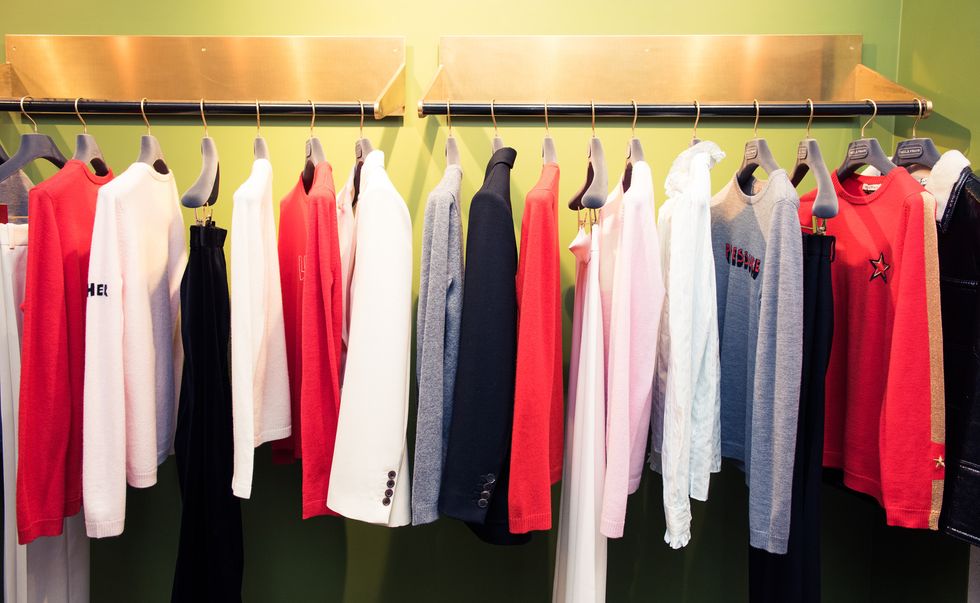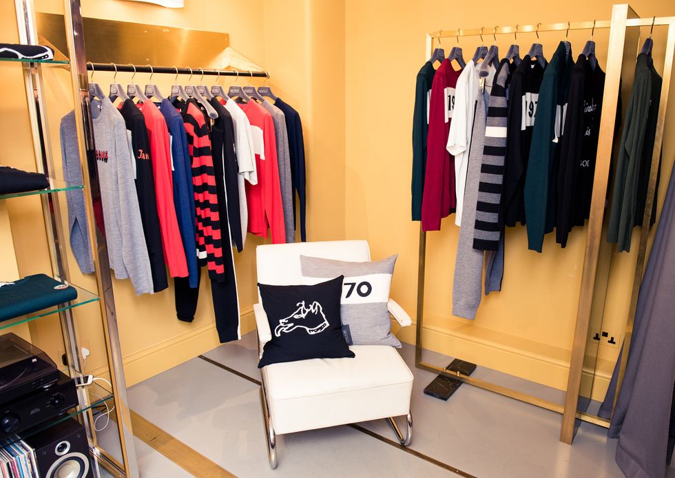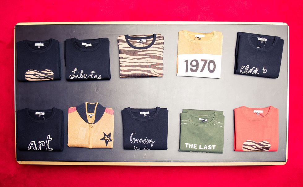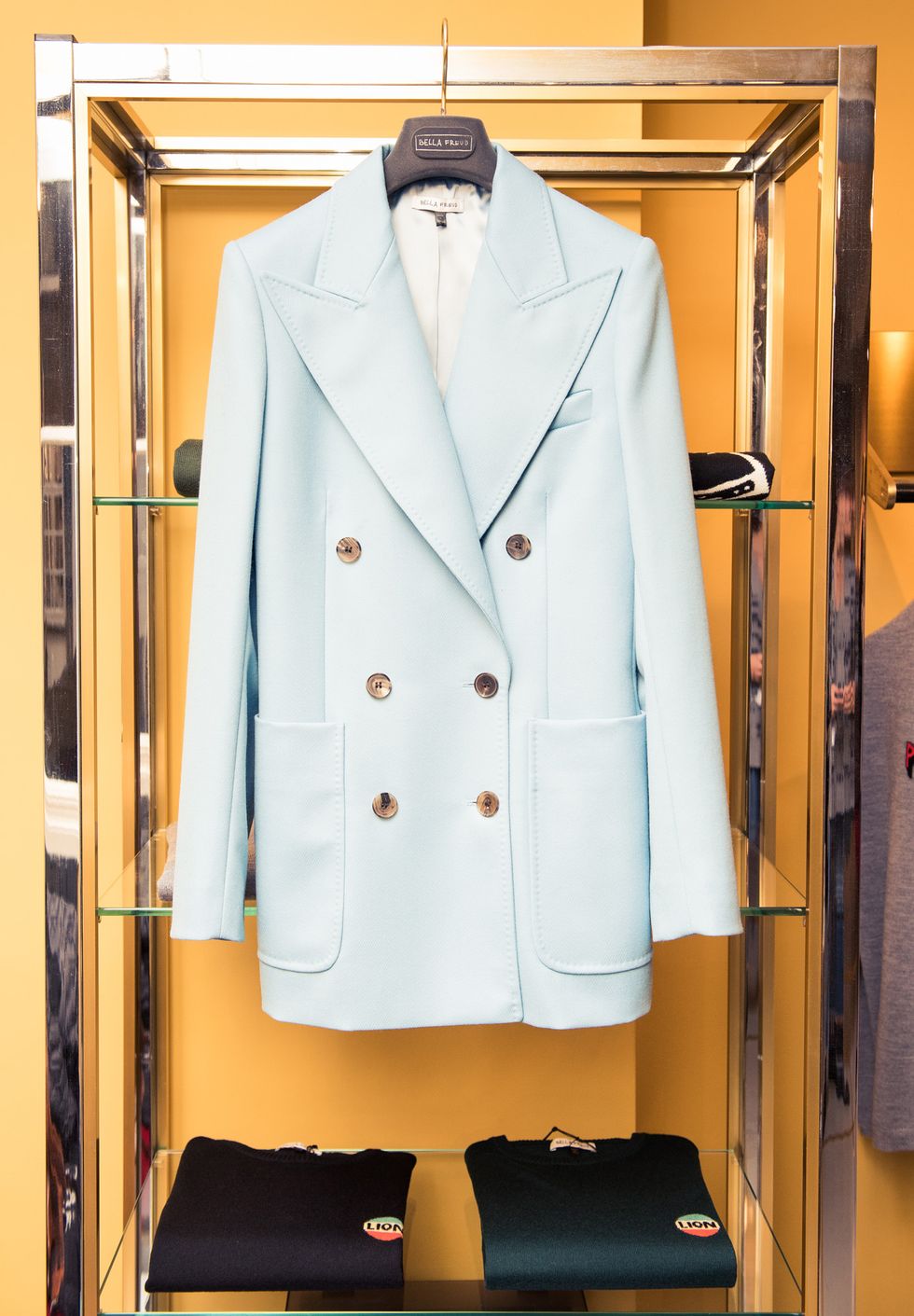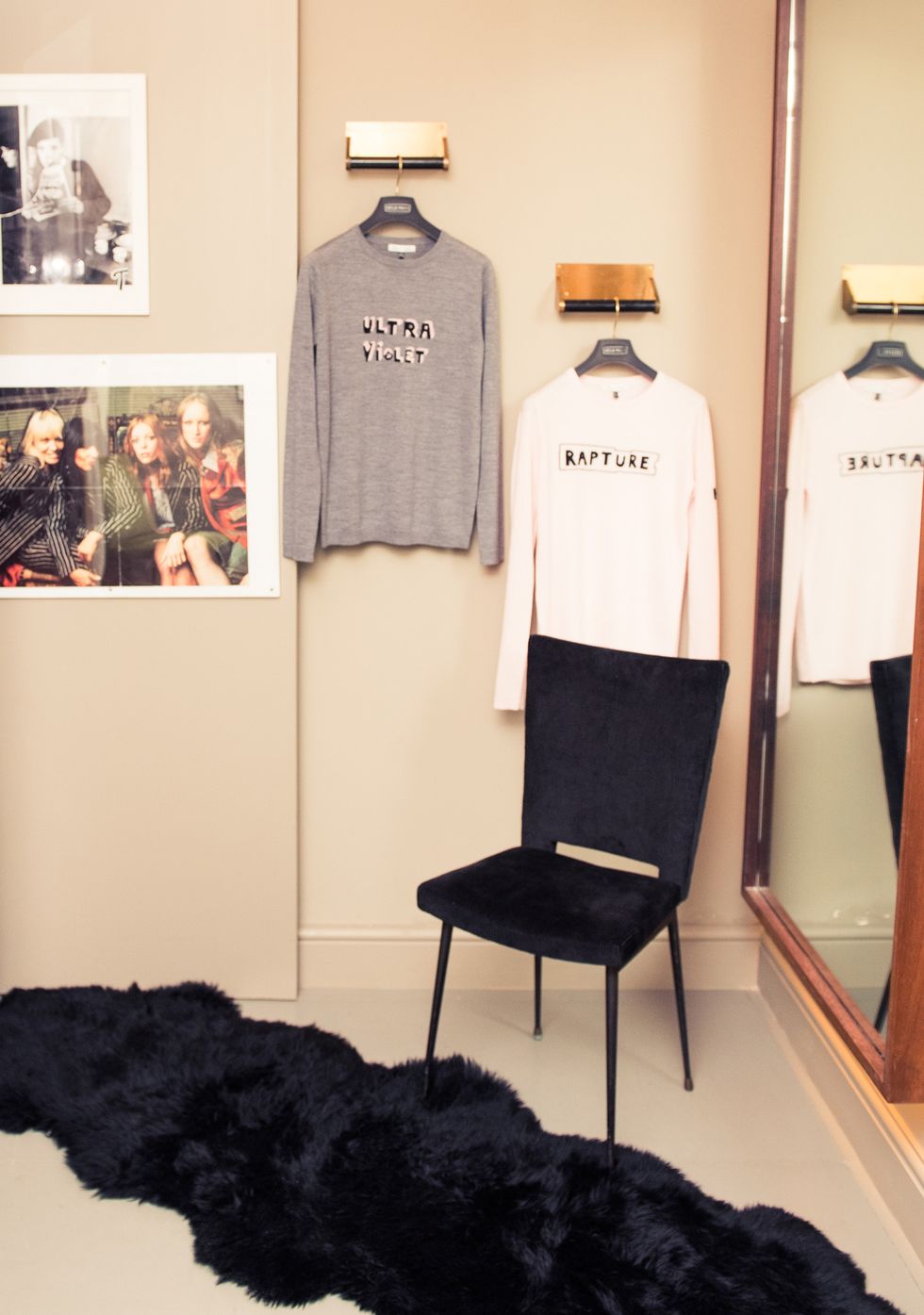 Freud now has something of a lifestyle line, with clothing (and not just knitwear, but blazers, trousers, dresses, silk blouses, and on and on), as well as pillows, throws, scented candles and fragrances—all of it housed in her Marylebone shop on Chiltern Street. The shop itself was intended to feel like an extension of Freud’s home. And with her own personal collection of art on the walls, and an unexpected mix of paint colors, it definitely doesn’t feel like any shop we’ve ever visited.