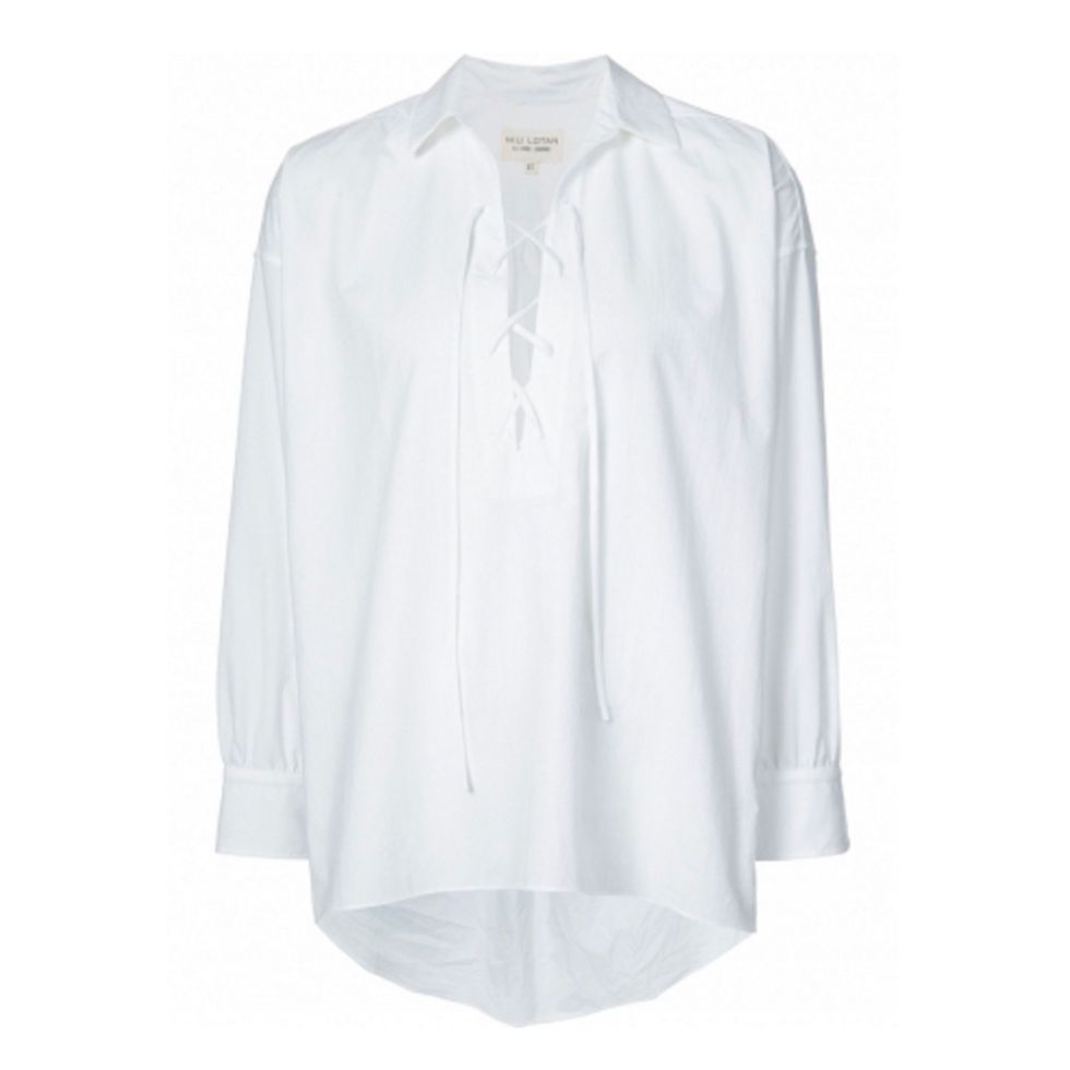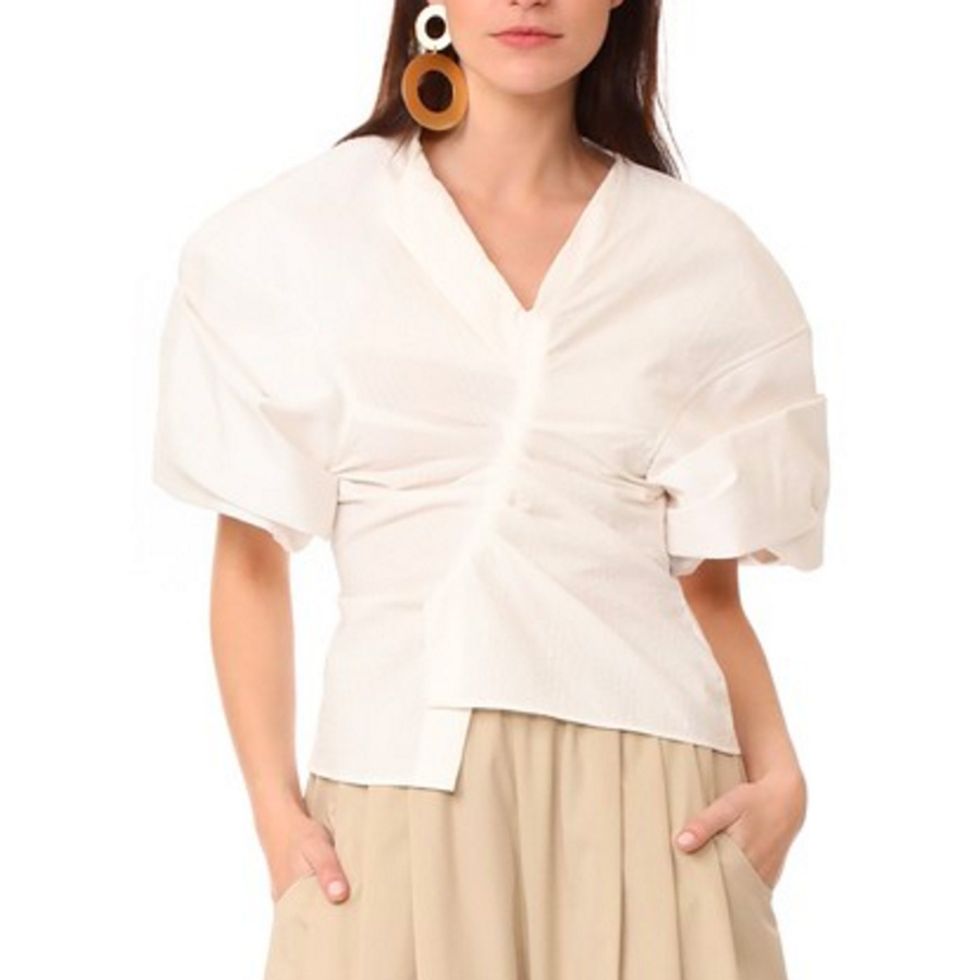 When we say shirting, we mean crisp white shirts, sure (best worn as a bathing suit coverup, in our opinion), but we also mean all the weird and wonderful ways designers like Rachel Comey and Rosie Assoulin have twisted traditional shirts and blouses to mean something entirely new.