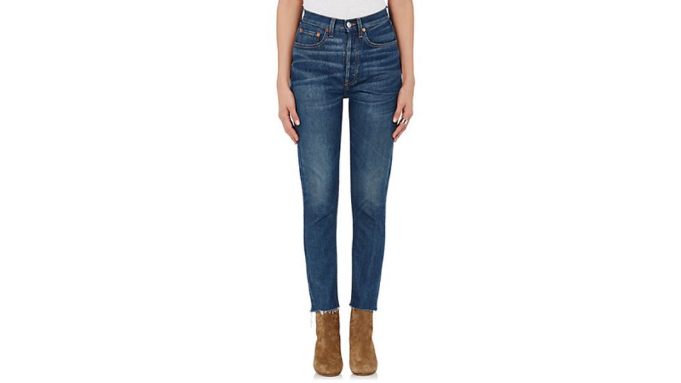 Remember the “Slave 4 U” Britney Spears days when our jeans were cut lower than our underwear? I know. Me neither. Now, even mid-rise feels low. Only the highest will do. Still, maybe because of my height (a not-very-dramatic 5'9"), I find it near impossible to find jeans that actually reach my navel—even those that are labeled “high-rise.” Anyone else? My search has seen me spend countless collective hours in dressing rooms, stalk models (their jeans always seem to fit them just right), and accost multiple PR professionals. But I swear to you, whether you have a similarly extra-long pelvic area or not, the five brands and styles here will get you that high-waisted silhouette—there’s no annoying half-inch-off among them.