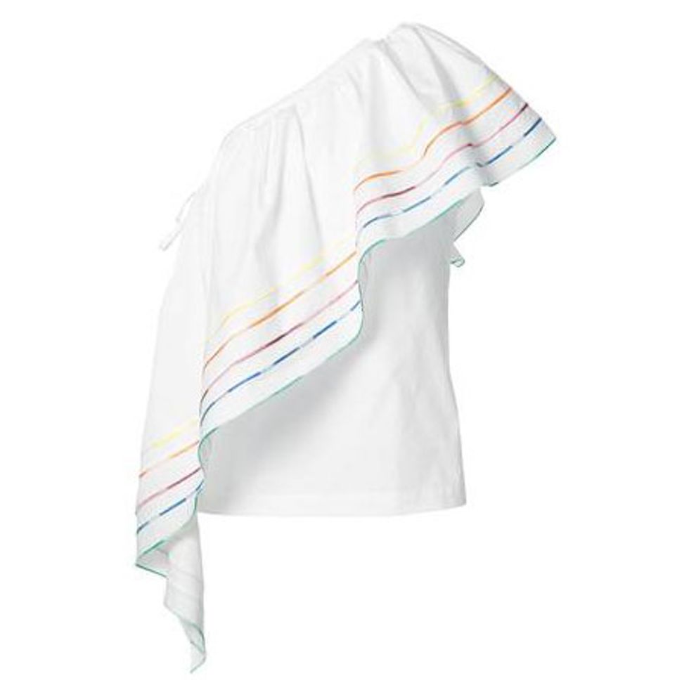 1. Rosie Assoulin blouse: I acknowledge that the whole off-the-shoulder thing may be dead in the ground, but I have to make an exception for this, largely because it’s the most perfect garment I’ve ever seen. Doesn’t it just look like spring? Plus, it’s technically only off *one* shoulder, so there’s that.