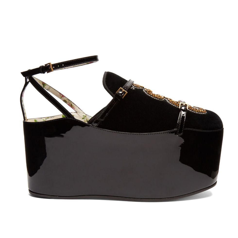 1. Gucci Platform Velvet Pumps: These are velvet and have an embroidered snake on them, making them the sexiest shoes I’ve ever seen. Also, the pump detaches (!!!), which is the most genius and magical thing ever. After I’m done dancing the entire night, I can take the pump off and walk to the subway in equally sexy (but less likely to make me fall on my face) loafers.