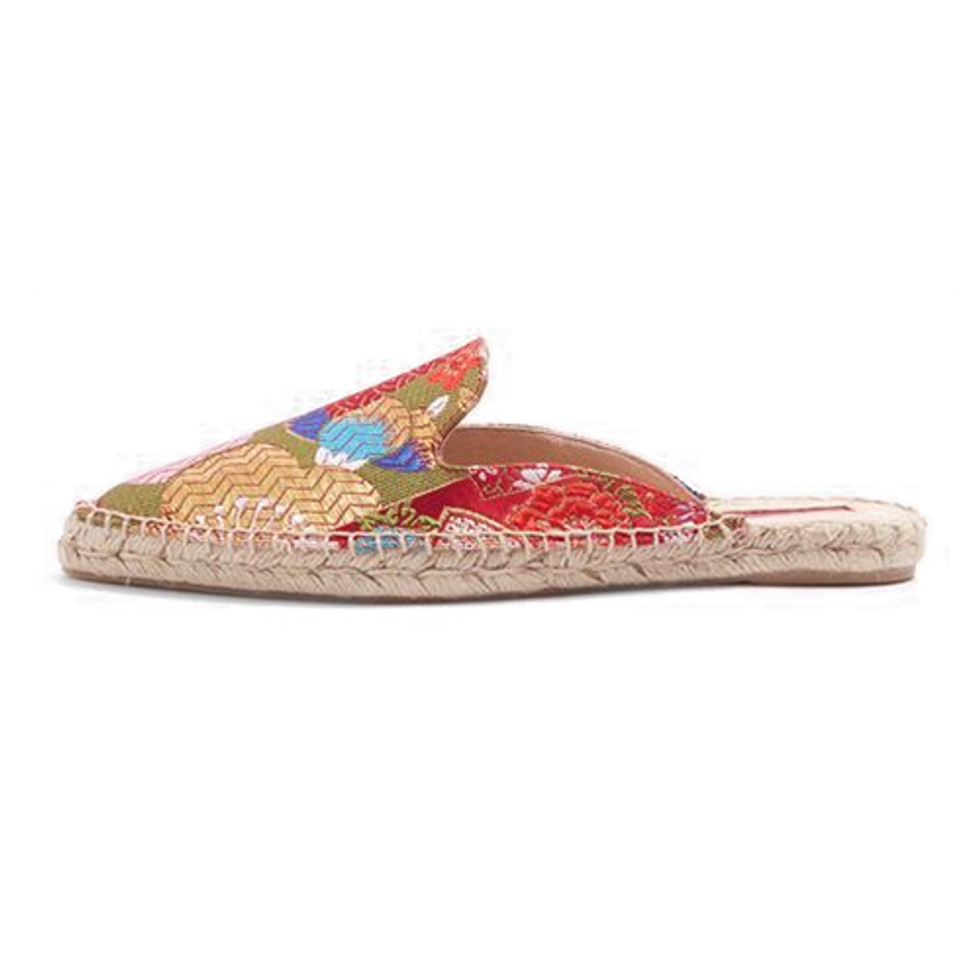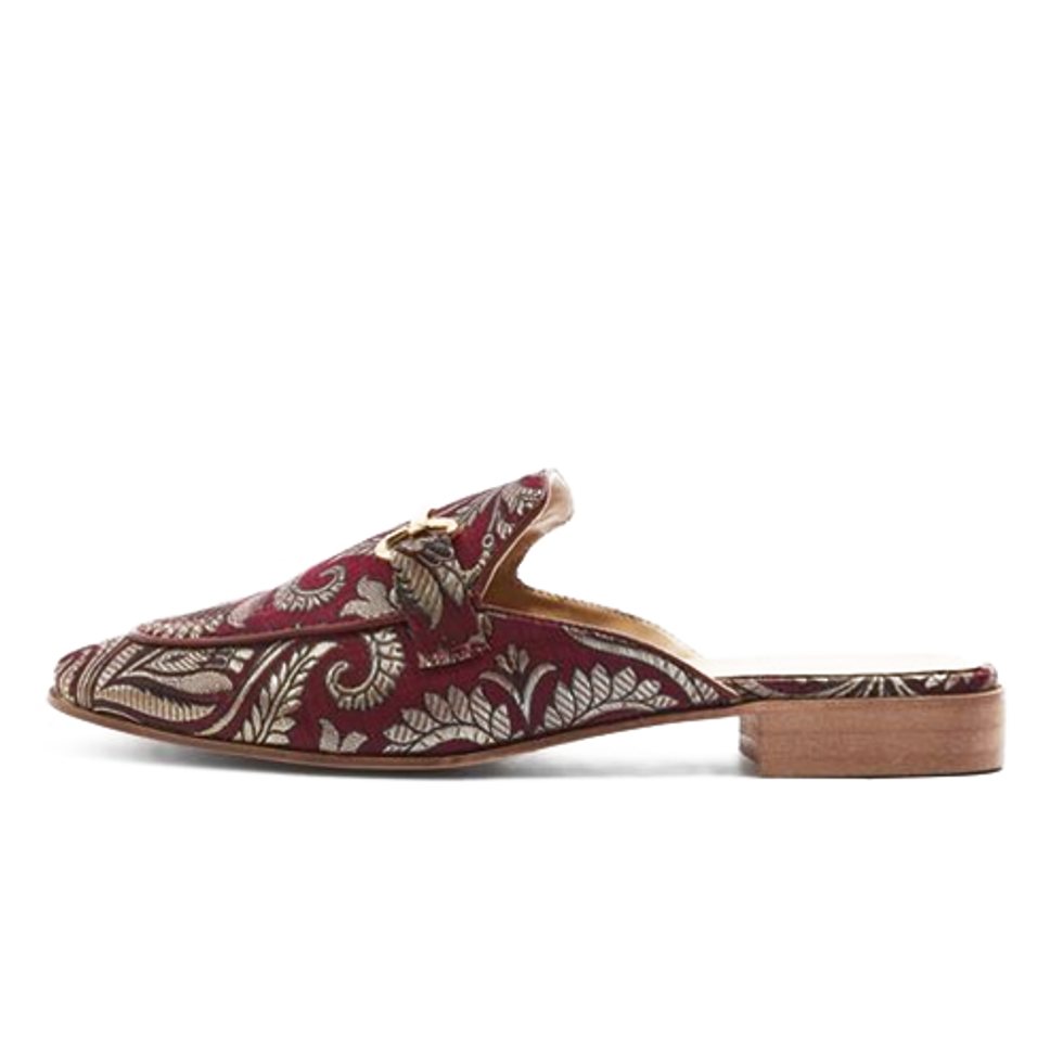 Pajamas are easy to throw on right before leaving the house, but since you don’t actually want to look like you rolled out of bed, the slippers need to stay behind. Instead, Simone’s tip to take the relaxed look from getting up to gala is a pair of lavish shoes—preferably patterned, embroidered, studded, or all three.