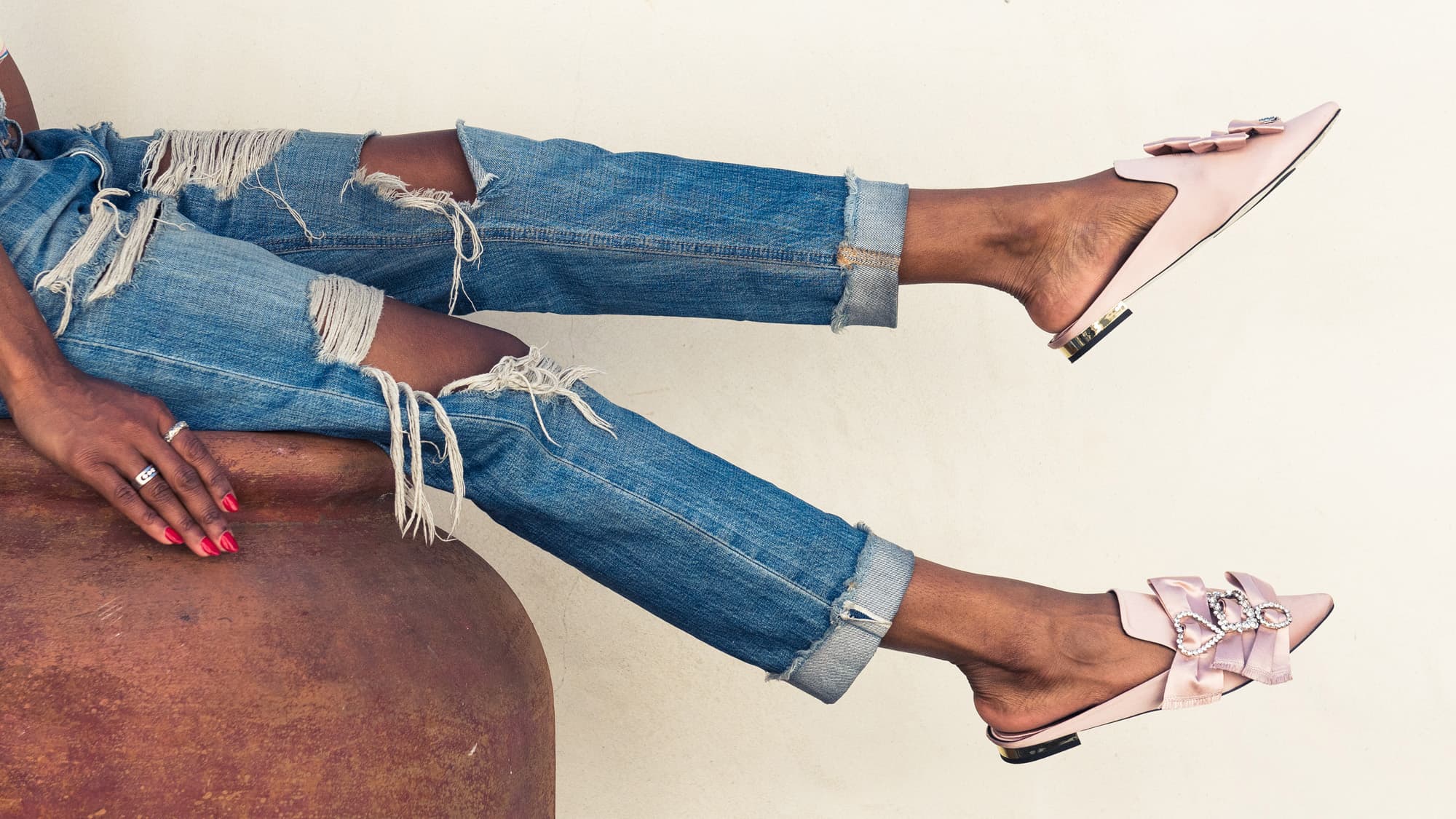 Not only does this elevated style elongate your legs (a little flash of ankle does wonders!), but it’s also easy to DIY: Just grab some scissors and cut an old pair of flares. Boom—done!