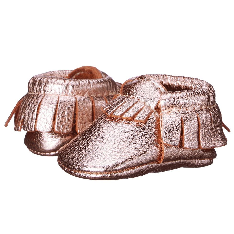 Baby Outfit: “Footed onesies for baby from Kickee Pants, baby moccasins from Freshly Picked, and kerchief bibs, dresses, and jumpsuits because they are so easy, fun prints from Boden and Mini Rodini, accessories from Hello Shiso and Meri Meri, and most things from Zara Kids.”