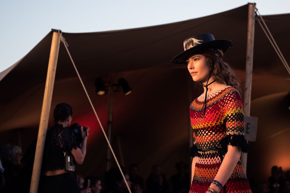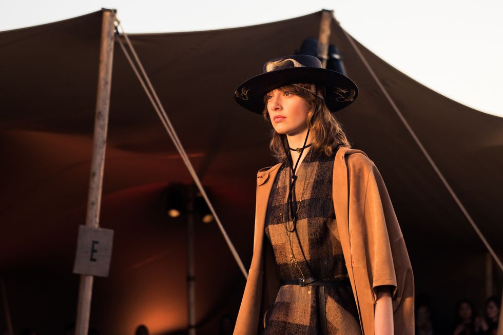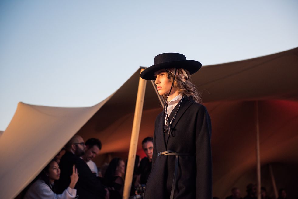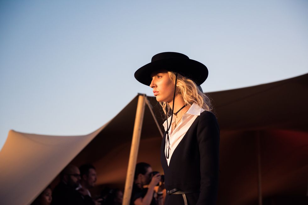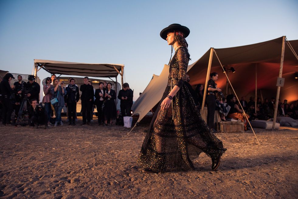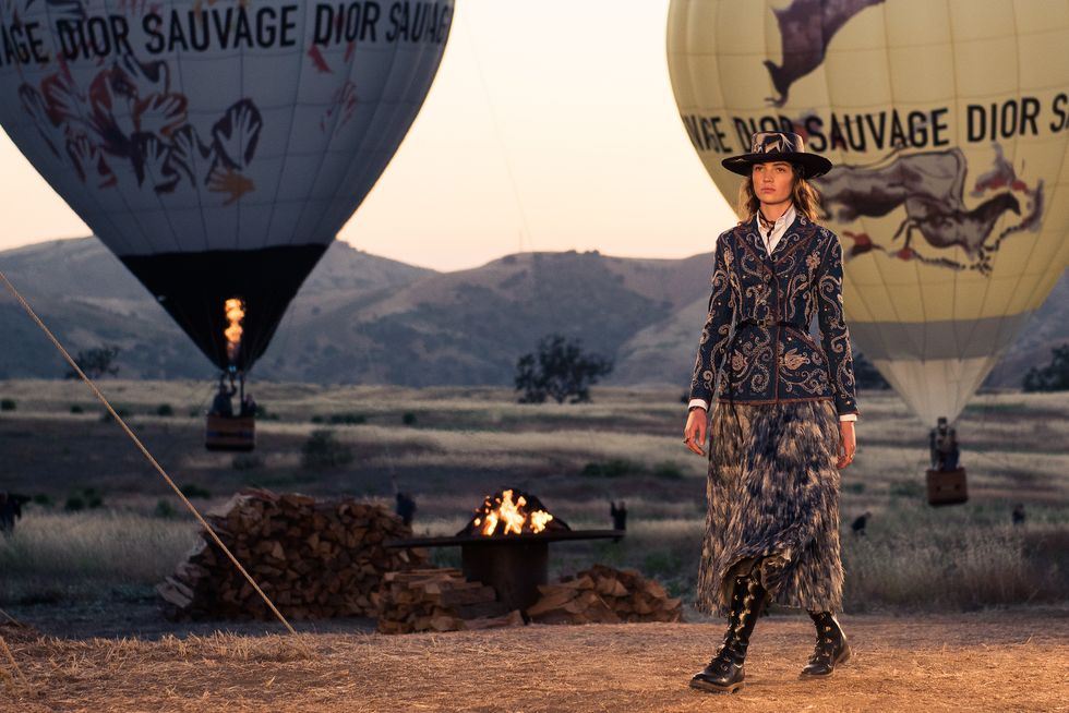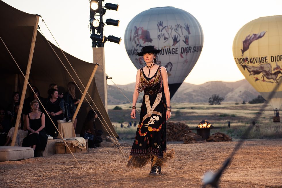 After getting up the mountain, guests were whisked away in ATVs and brought into a stunning space created with tents, pillows, and stone set against the setting sun with two large Dior Sauvage hot-air balloons ready to take flight. While we were in L.A., it felt more like we were in a remote ranch outside Santa Fe.
