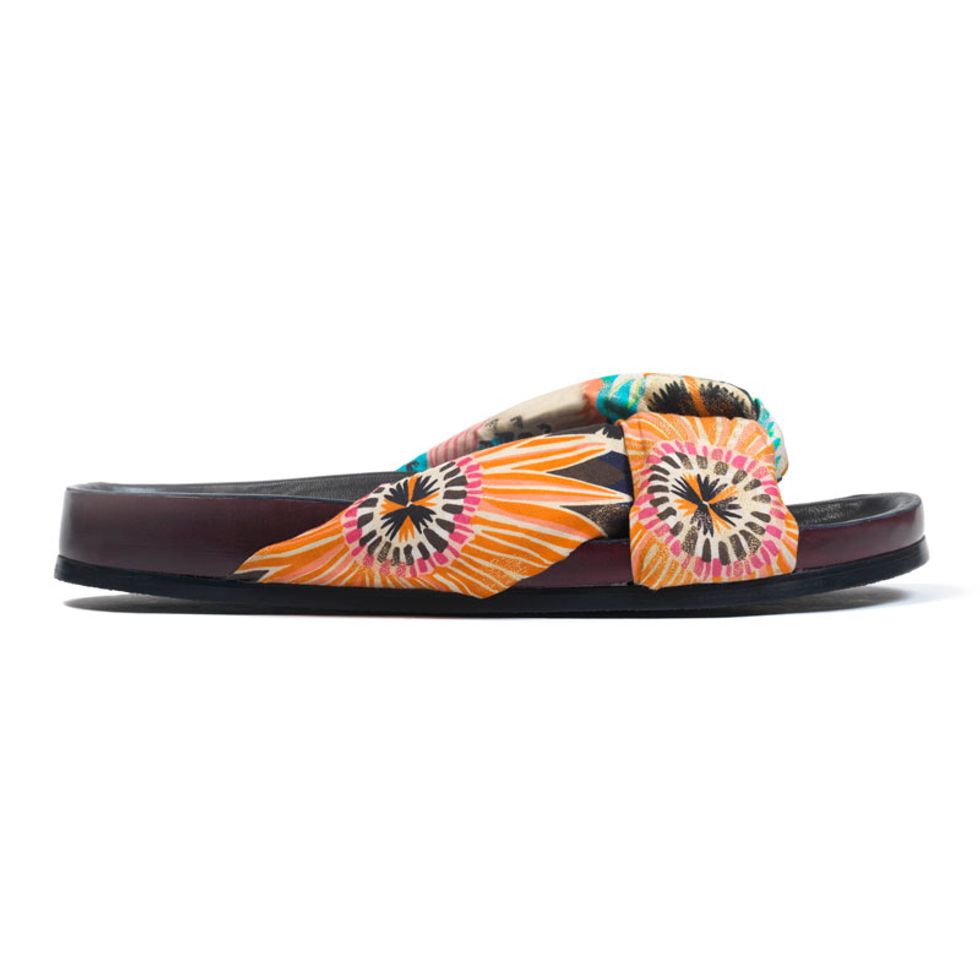 With summer gowns (we didn’t know that was a thing, but we’re so happy we do now), denim shorts, sunglasses, metallic and patchwork bags, and metallic scarf-print slides in the mix—all in Chloé’s signature French-girl-goes-to-Ibiza style—this is not a collab you want to sleep on.