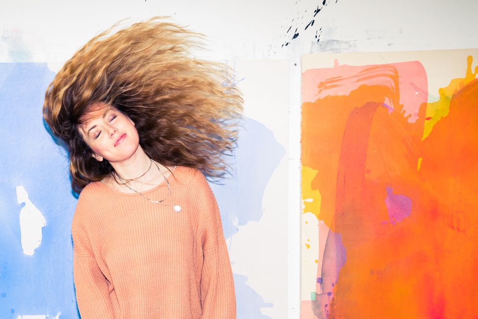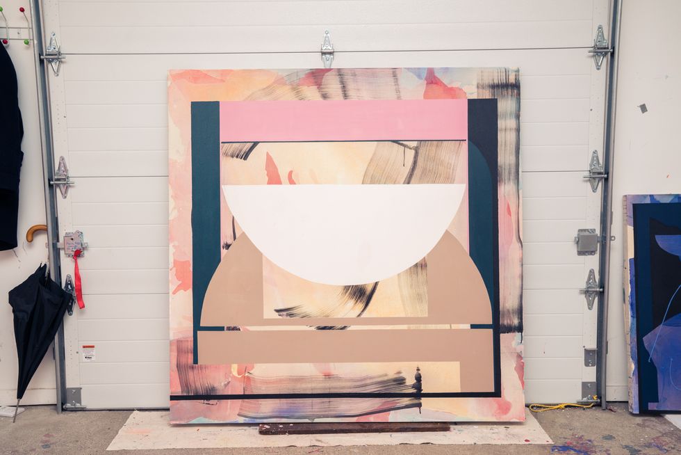 Walking into Kathryn Macnaughton’s studio, you instantly feel that special energy of creative spaces. Propped up against the walls are pieces that the Toronto-based artist is currently working on as she preps for an upcoming show in Vancouver, British Columbia. As we walk around checking out her piles of records and art books and mags, Macnaughton tells us a little bit about how she first got into the art world: “I started painting when I was really young. I did an oil painting course—I think it was first year [of] university in the summertime, in Italy,” she explained. “I came back and did illustration for school [OCAD University], but I kind of did abstract work on the side for myself because I liked it. I didn’t think I could have a career doing it full-time—I just continued down that road for ten years, just doing it on the side, [then] decided to take it full force. I would say I was 18.”