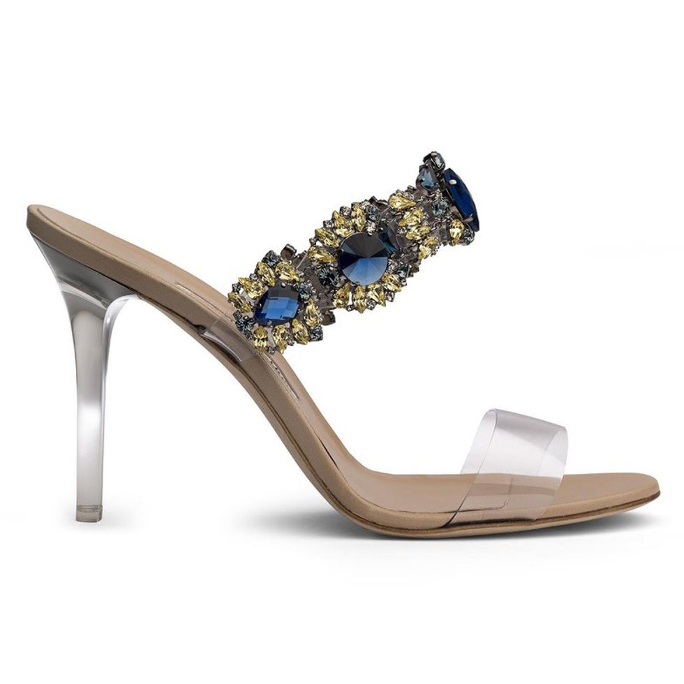 All good things must come to an end, Rihanna’s Manolo Blahnik collaborations included. The major silver lining in this, though, is that the bad gal is going out with a bang. The third and final collaboration, So Stoned (clever, Rih), is quite arguably the best one yet (although we will never forget the denim thigh-highs from “Denim Desserts”). While we’re not blind to Rihanna’s badass brilliance, we didn’t really know what to expect from this collection—but damn, it did not disappoint. It includes one strappy high heel, one heeled gladiator, and two heeled mules, with perspex heels, PVC, and Swarovski jewels used throughout. You’ll recognize the Poison Ivy heeled gladiators from Rih’s “Wild Thoughts” video.