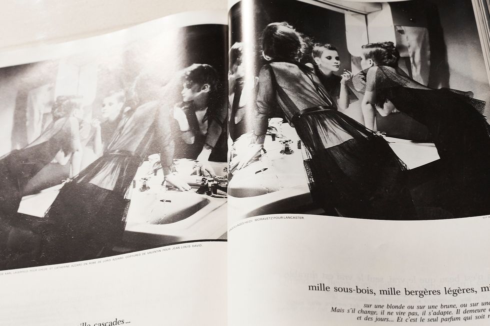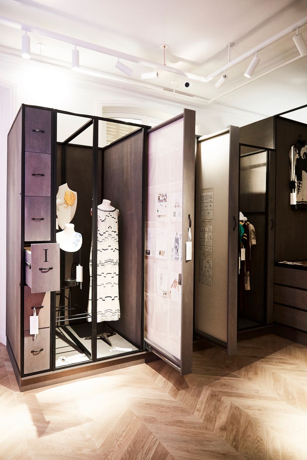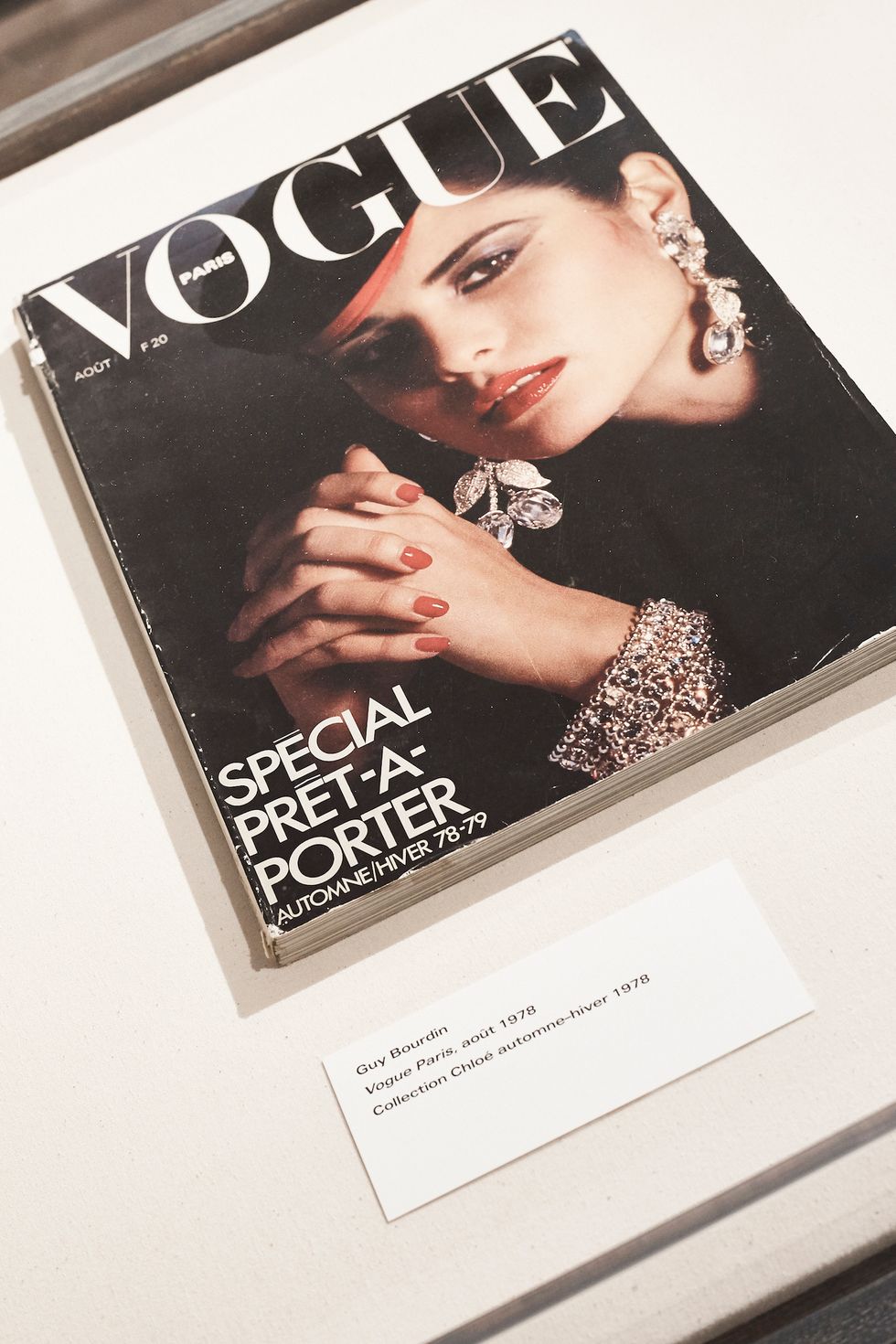 It was nothing short of surreal to see archival Chloé pieces in an imposing Belle Époque building that was once a hotel, alongside vintage Vogue editorial shoots and framed Bourdin prints. The space was restored a few years ago but has kept some of the original features such as ceiling molding, fireplaces and an impressive stairwell the snakes up and down the building with wrought-iron railings.