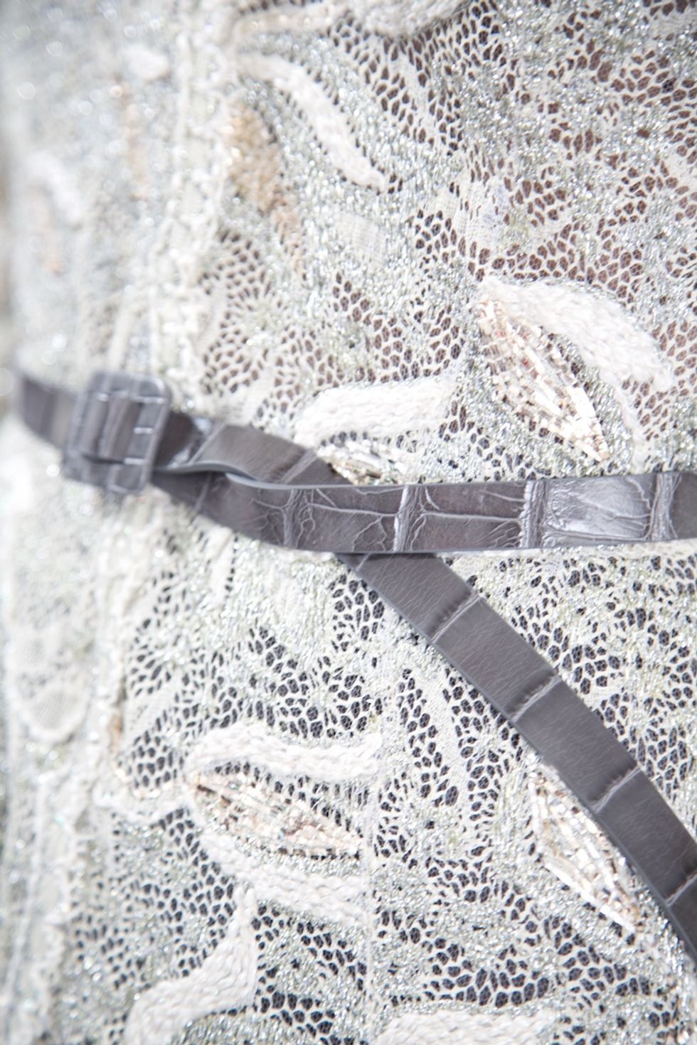 This season, the Italian designer focused on men’s tailoring with a feminine slant. Chiuri, who presented her second haute collection for Christian Dior, continued to rework the Bar jacket, but this season’s versions were softened with rounded shoulders and less exaggerated hips. Outerwear was a key focus and included heavy herringbone coats cinched at the waist with thin leather belts that were paired with billowy ankle-length pleated skirts. There was also flannel wrap-neck coats secured shut with contrasting belts but featured a fluidity to its silhouette. Leather aviator jumpsuits with shearling detailing and goggle-inspired sunglasses imbued a sense of sportiness and travel to the otherwise tailored collection.