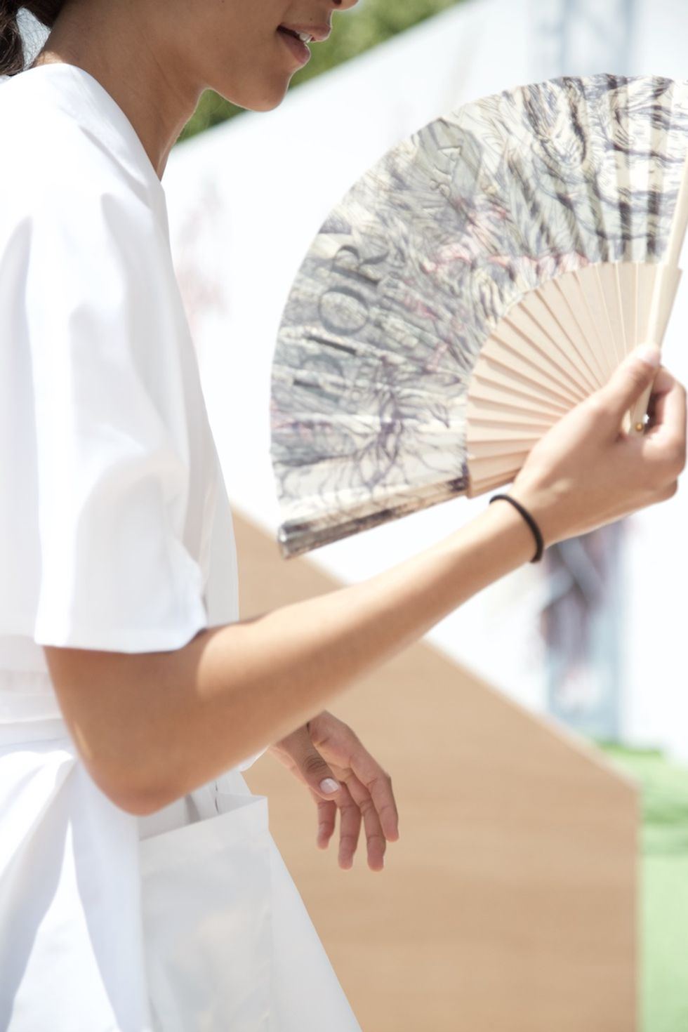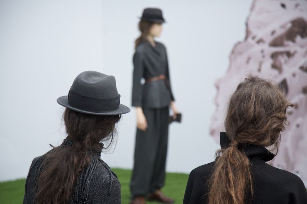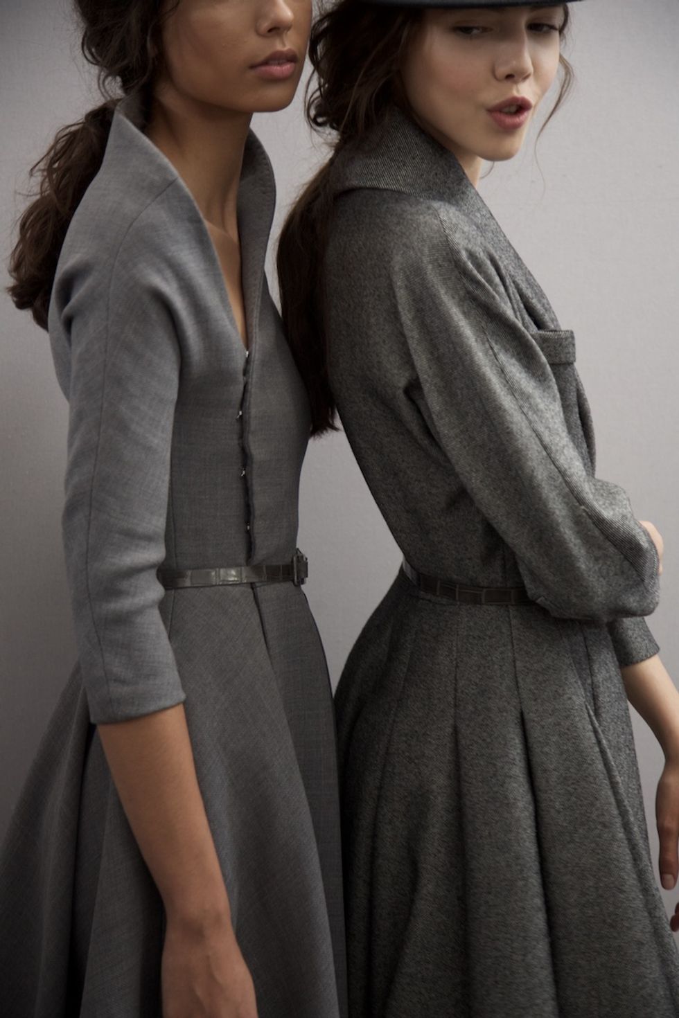 In her research, Chiuri discovered that after the inaugural show, Mr. Dior’s dresses were sold around the world from South America to Asia. The brand’s founder traveled with the gowns, promoting his collection, which was predominantly grey and used masculine fabrics like tweed and flannel. Chiuri wanted to give a nod to the women who supported the brand in the early years, and in keeping with the spirit of travel, she turned to strong female explorers from the turn of the century, such as Amelia Earhart, who provided the inspiration for the makeup look.