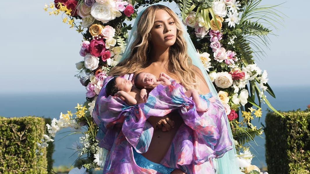 They are a month old: To celebrate, Beyoncé posted a sweet (and stylish) photo with them on her Instagram. Babies’ first viral photo!
