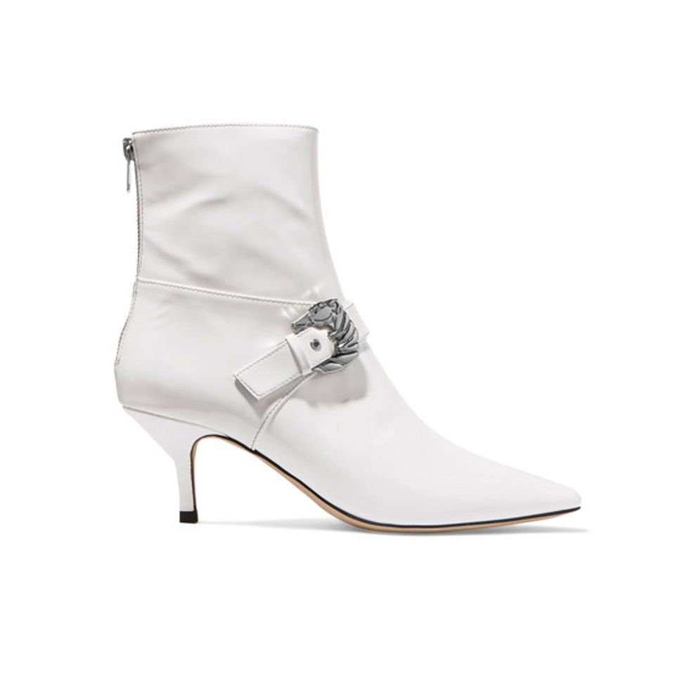 1. Dorateymur Saloon Buckled Patent-Leather Ankle Boots