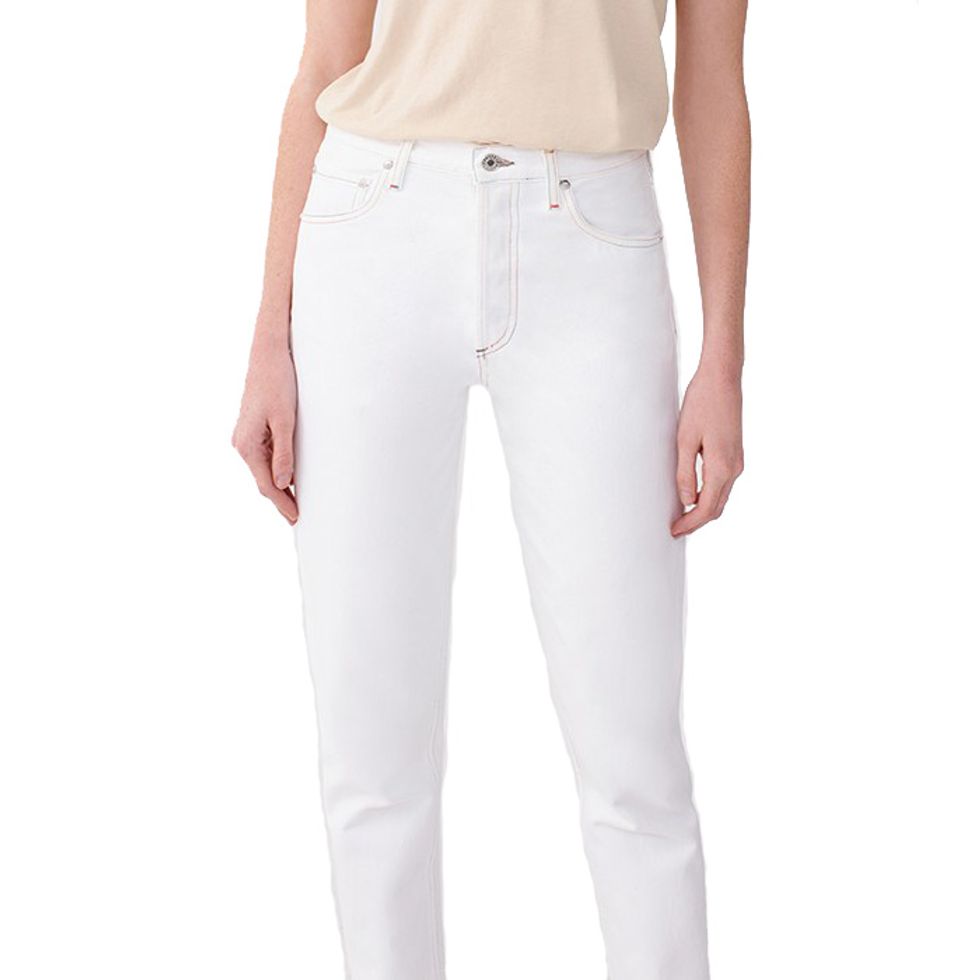 The other day I found a huge box with all of my old college and high school t-shirts. I went to Bronx Science for high school, and our logo is an atom (really cool) and our colors are bright green and yellow (really chic). For college I went to the University of Pennsylvania and their mascot is a Quaker. Nothing about the aforementioned is on-trend or sexy, but I loved those schools a lot and have a soft spot for their gear, even if wearing it looks a little...lame. But whatever—the nostalgia of those pieces motivates me to incorporate them into my wardrobe. Plus, I love t-shirts but have trouble buying vintage tees unless I feel somewhat connected to the band or artist or logo printed on them. This UPenn shirt is perfect in that it’s casual, cute and means something to me. When I wear it I tie a knot at the bottom to expose a little midriff and it makes the great base for an all-white outfit. Now all I need are these dreamy Dorateymur boots and the perfect pair of white AGOLDE Jamie jeans.