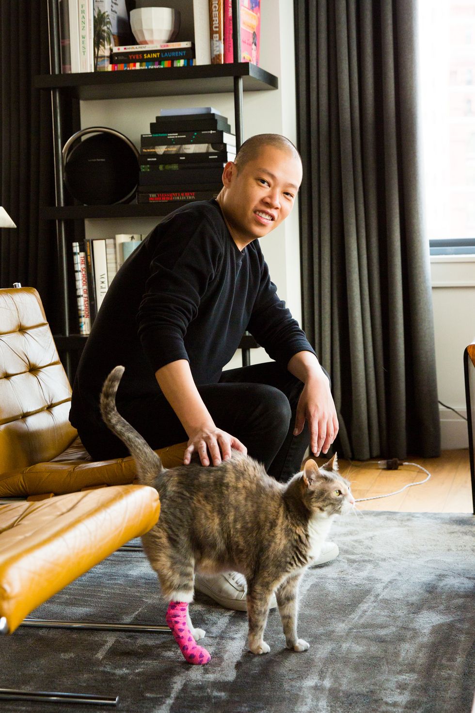 If you expected Jason Wu—the man behind some of the most beautiful clothing being made today—to have a home that is anything less than stunning, allow us to correct that misconception. The TriBeCa space is just as pristine and elegant as his collection, even with two sweet, very fuzzy cats running around—Wu matched his grey cats to his grey furniture to keep things looking neat.