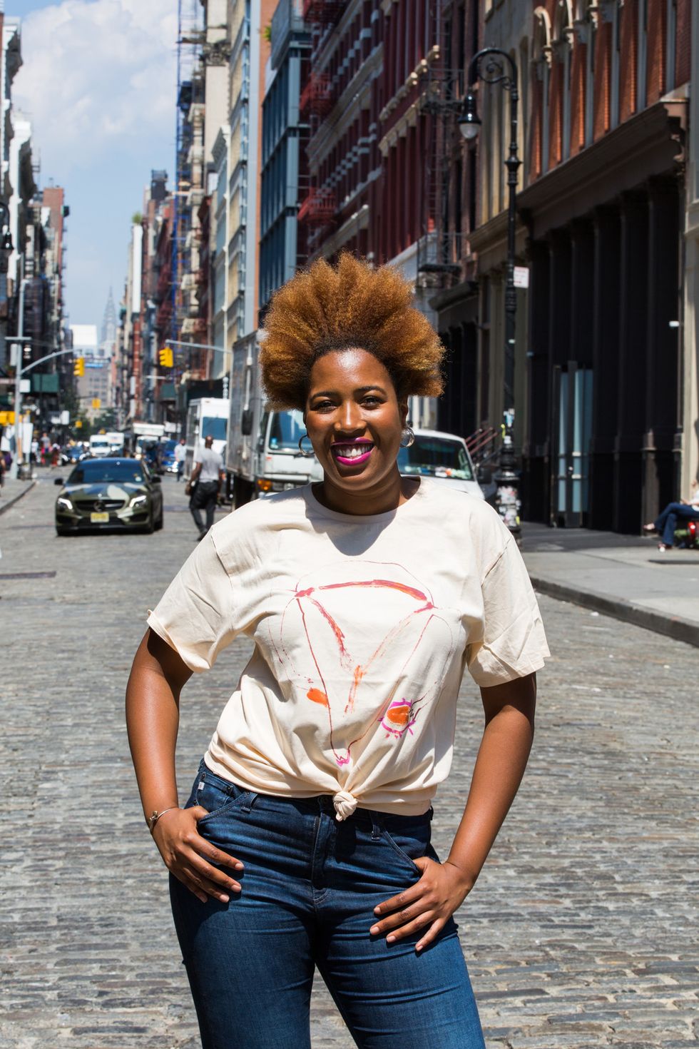 To promote the project, Iglesias and Balda selected several women to be photographed wearing the shirts, including Tarajia Morrell, Pamela Love, Lotta Nieminen, Mona Fastvold, and more, all of whom they felt best represent their message of female empowerment. Several of our editors were able to participate in the project as well, each with her own personal connection to Iglesias and Balda’s mission.