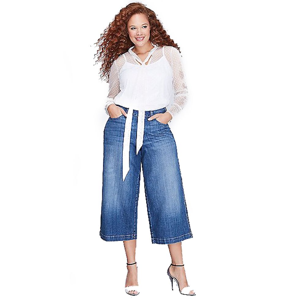 Much of the world has lived in skinny jeans and tightly tapered trousers for the better part of a decade, but fashion is nothing if not cyclical. The flared and super-wide, JNCO Jean-esque cuts of the ’90s have been slowly reentering the market for some time now, and Fall 2017 may be hitting us with the coolest options yet. Finding niche trends like these in extended sizes was once a near-impossible feat, comparable to slaying dragons or landing an invite to the Met Gala. Lucky for us, these 37 plus size wide legged, cropped pants prove that things are evolving for the better.