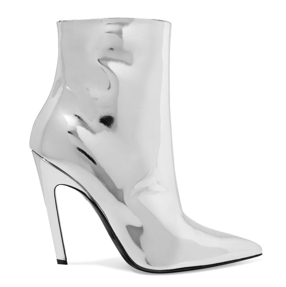 We credit Balenciaga for starting this trend, but this season, a mirror-finish boot is the perfect accessory to dress up any outfit.